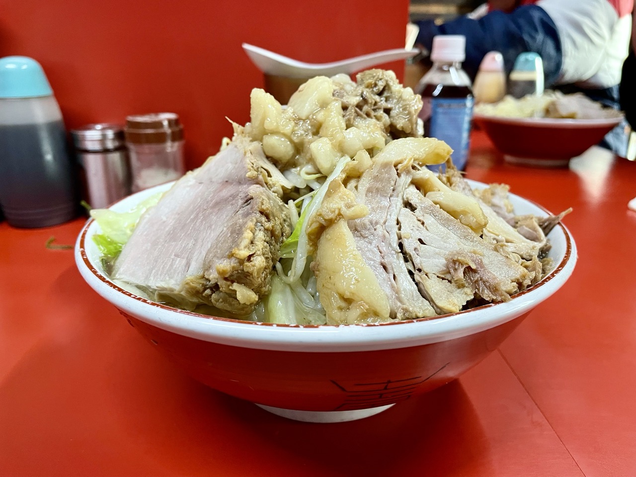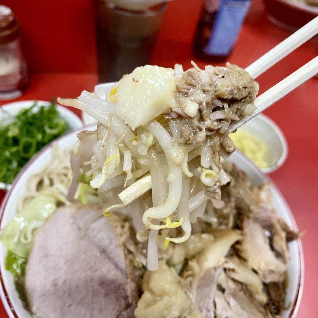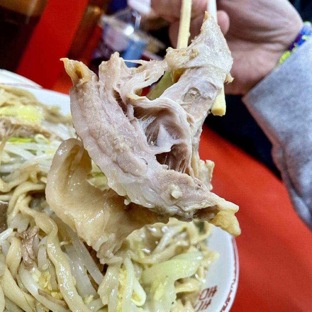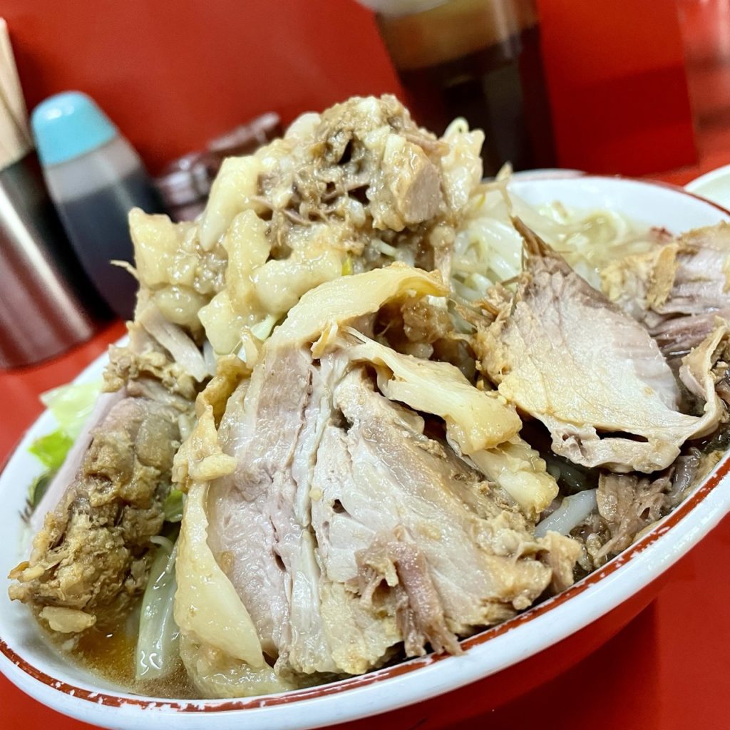 デフォの豚は2枚ですが、1枚のサイズが規格外なので他店の豚増し相当のボリュームがあります!