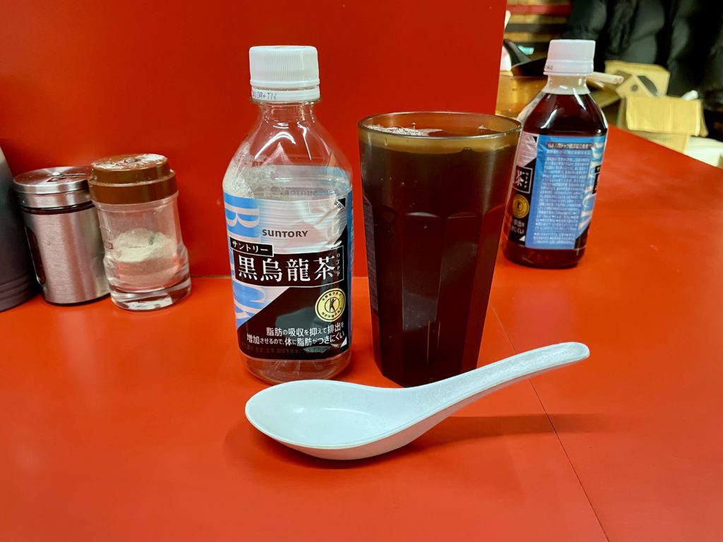 店に入ってすぐに黒烏龍茶の自販機があり、ちょうどコップに注ぎ切れるサイズなんですよね。