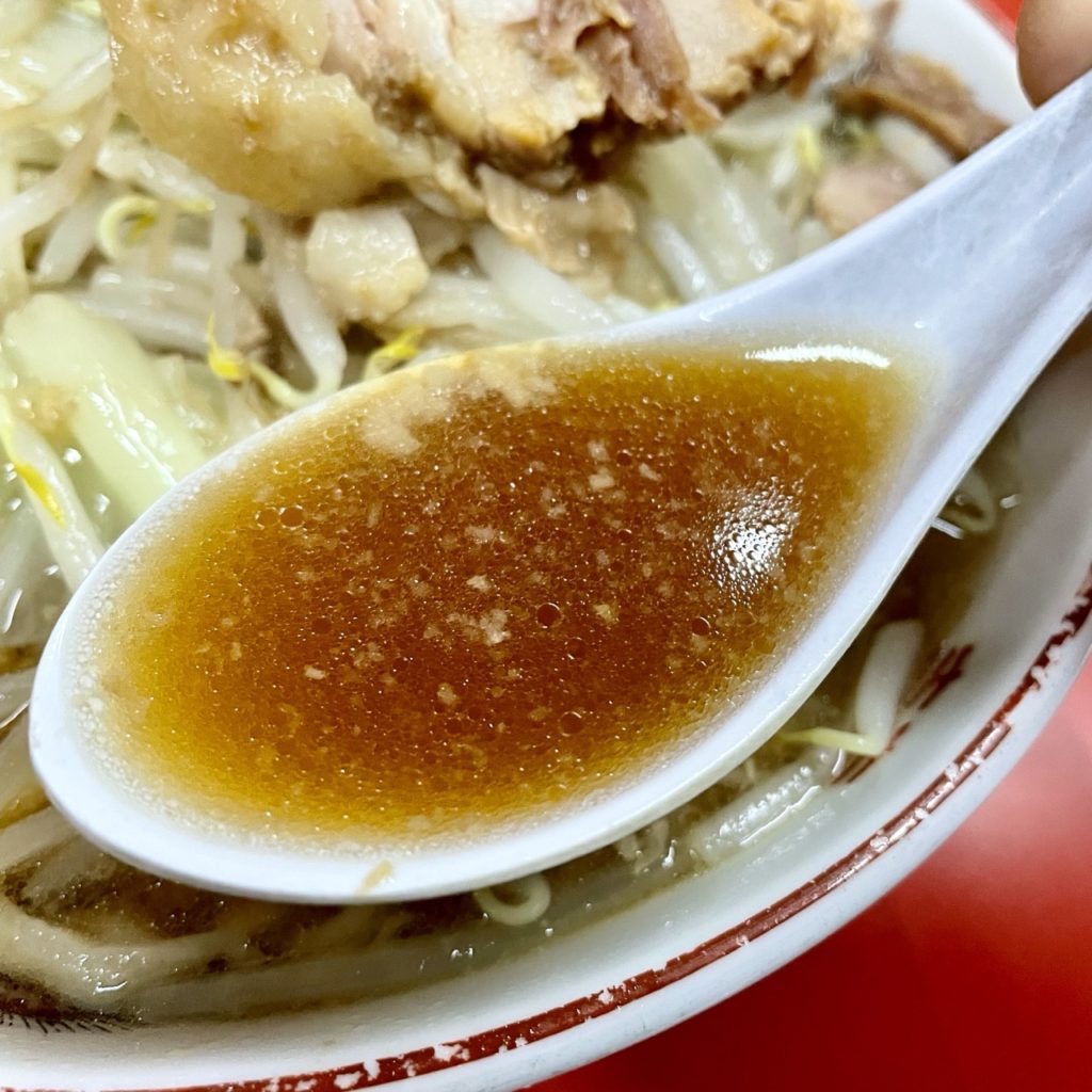 アブラや卓上のカエシをポタポタさせて食うヤサイも美味いんですけど、スープに沈めてクタらせたヤサイも大好きなのでな!
