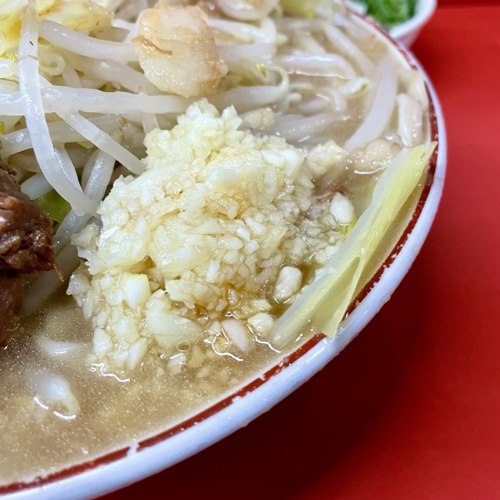 どんと濃いスープにニンニクのパンチが合いすぎて困っちゃう。