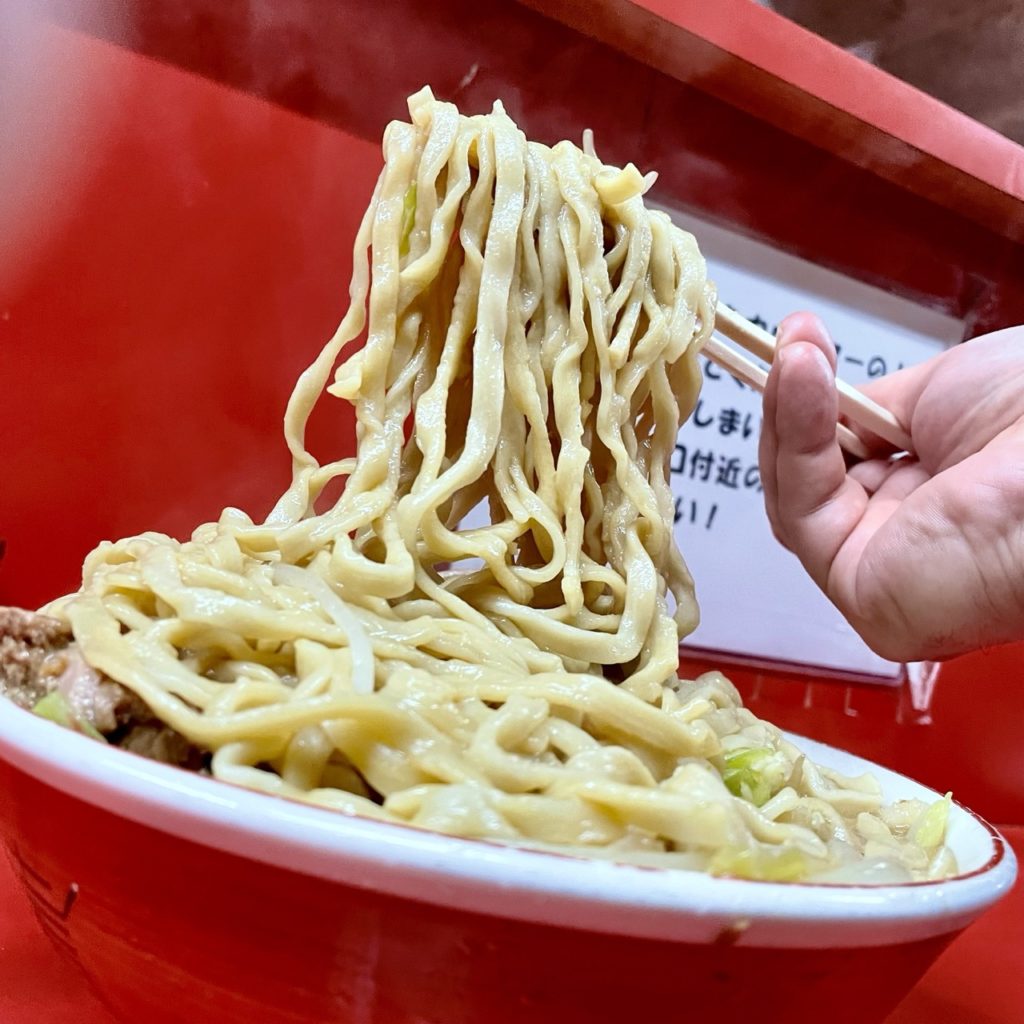 デロ麺1歩手前ぐらいの柔麺で、モチモチ感が半端なく本当に美味すぎる!