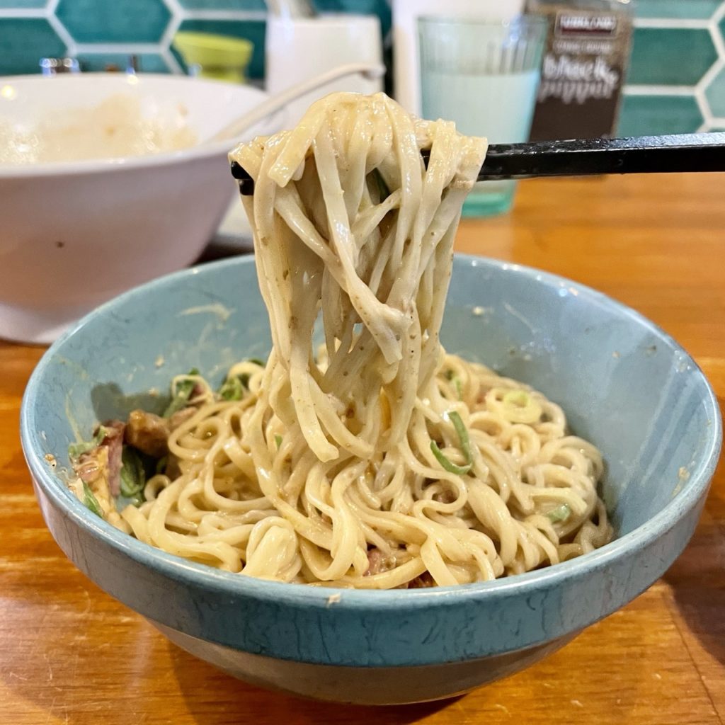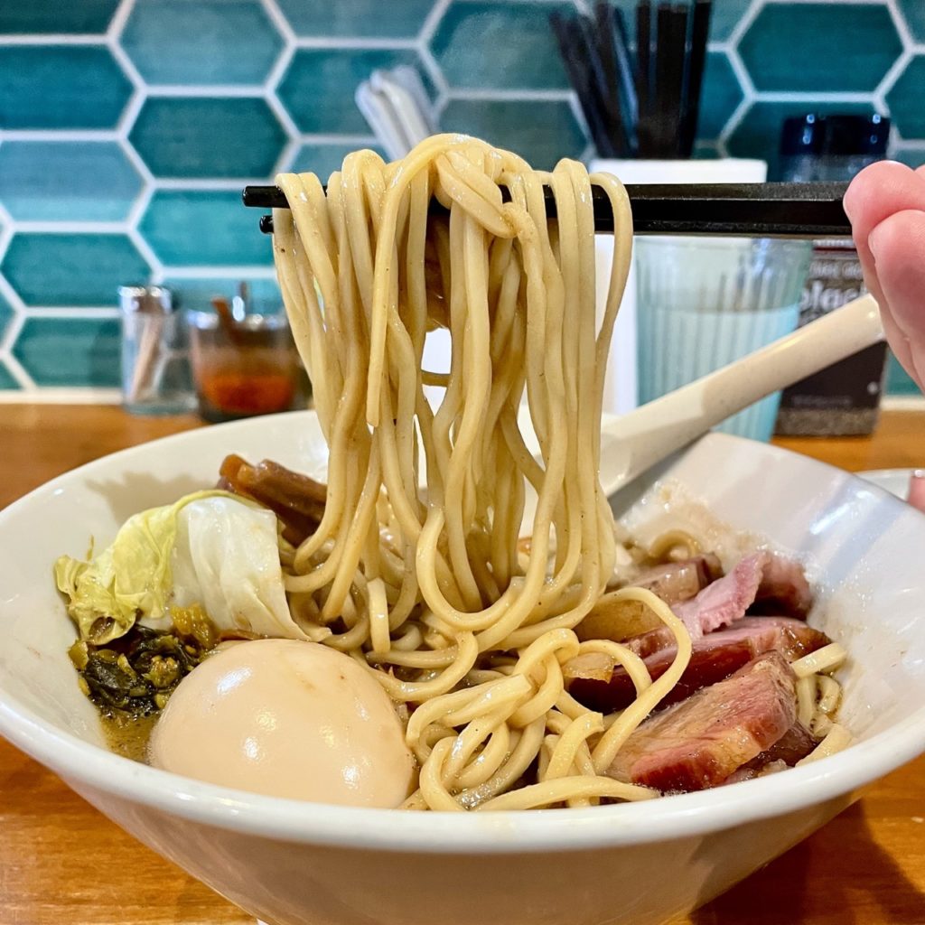 四角い断面の自家製中太麺は、低加水でポキポキ食感がたまらない!この麺マジで好みだわ〜。