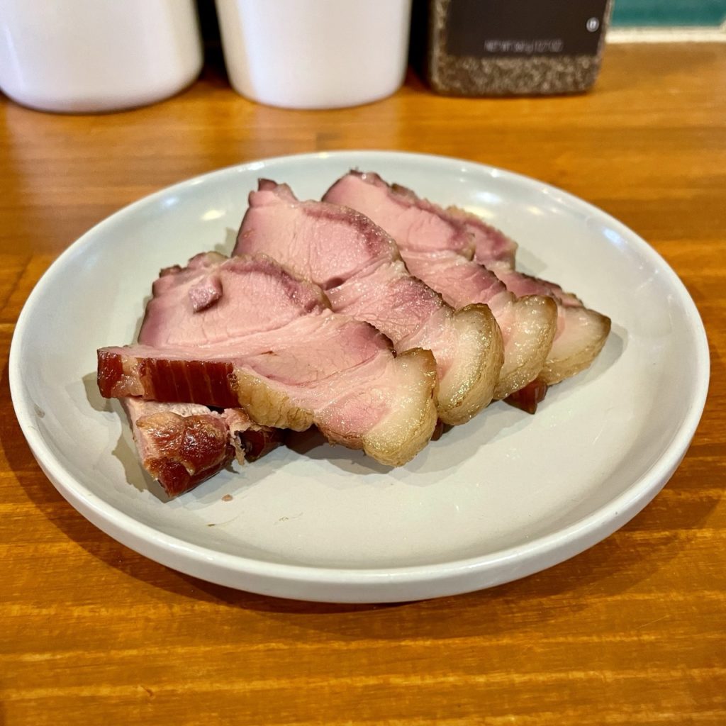 一緒に頼んだ吊るし焼豚(5枚くらい)。