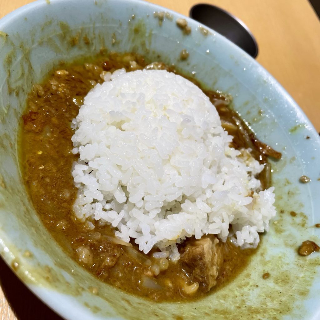 アブラやらなんやら混ざって、カレーの旨味にブーストかかってる!