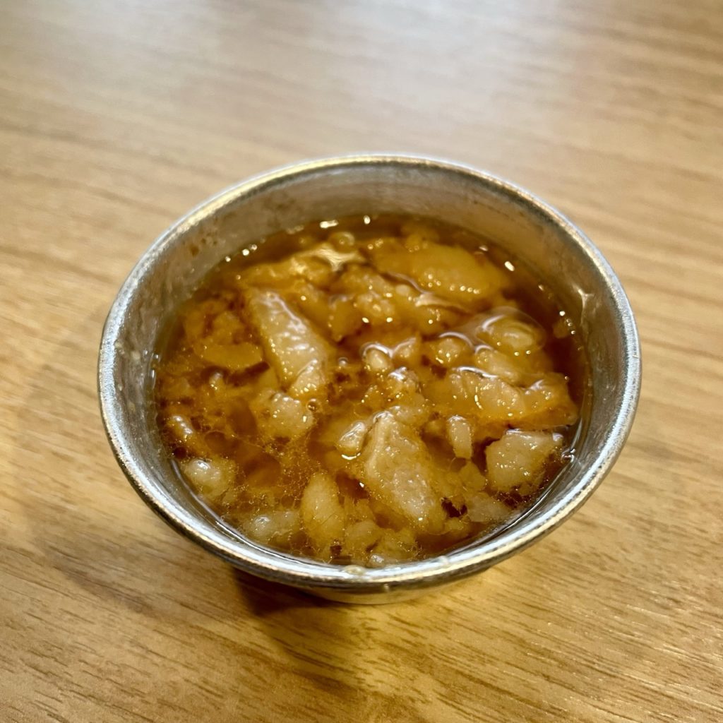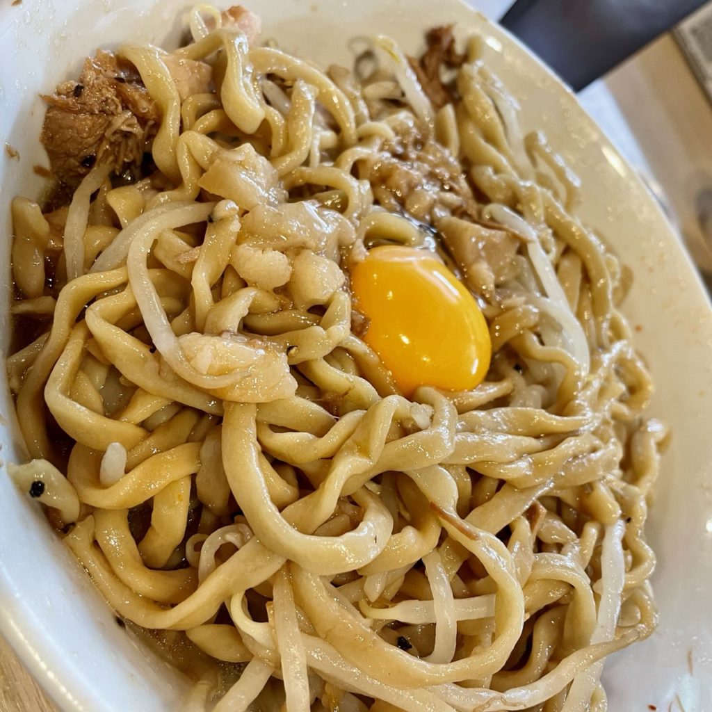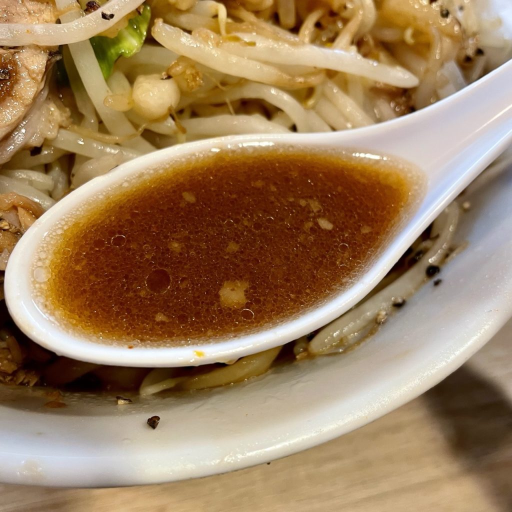 ラーメンの方はこってり乳化スープですが、汁なしのスープはパンチもありつつ醤油のキレも感じて美味い!どことなく非乳化感も感じるな〜!