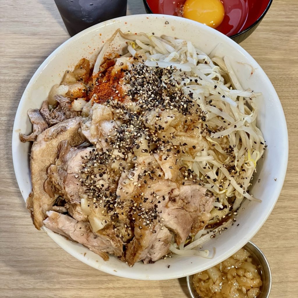 前回はラーメンを食べたので、今日は汁なしと決めていた!豚もかなり美味しかったので豚増しに!