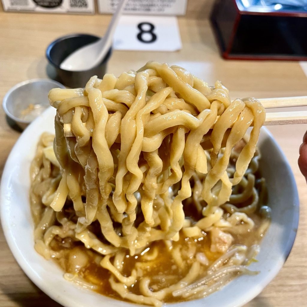 見よこの暴れるような極太麺!