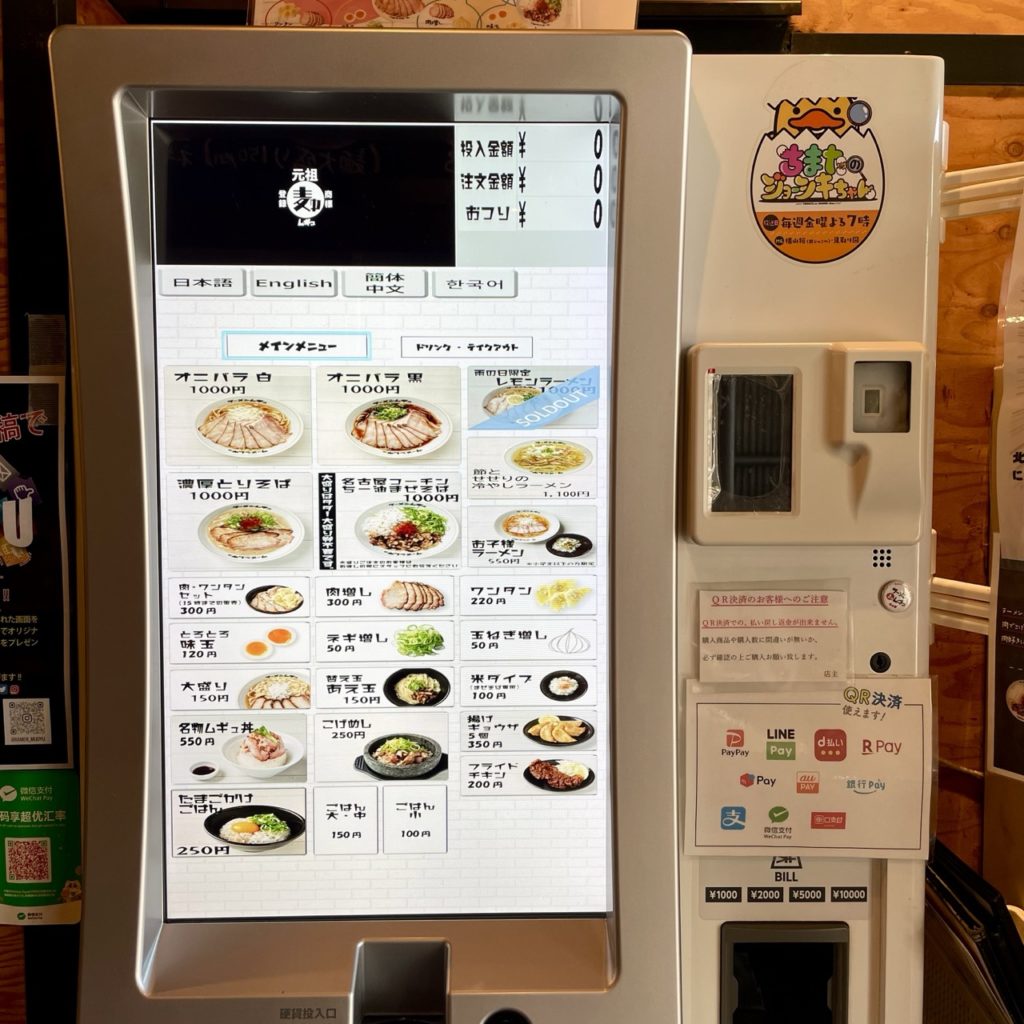 券売機で各種QRコード決済が使用可能。