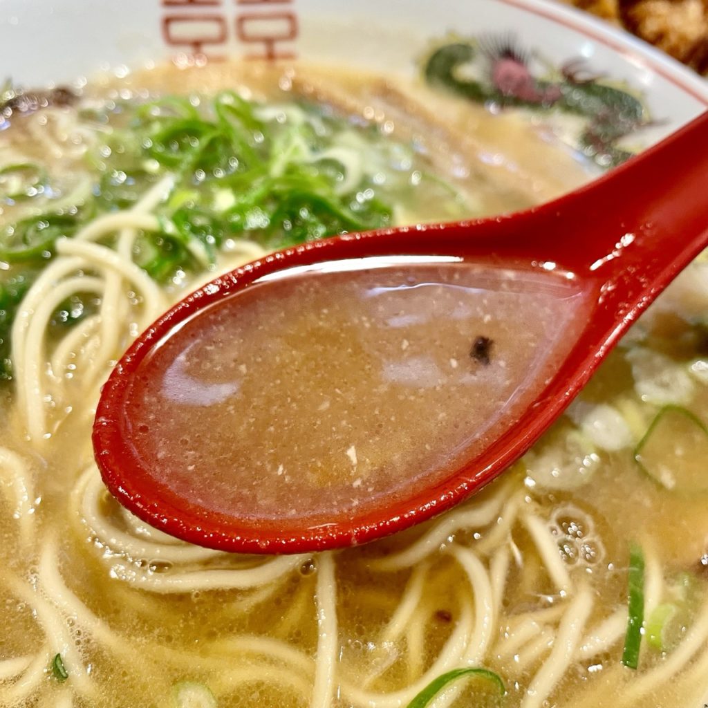 混ざりきらないうちにレンゲを底まで差し込んで飲んでみましたが、確かに下の方はあっさりしたスープになってる!