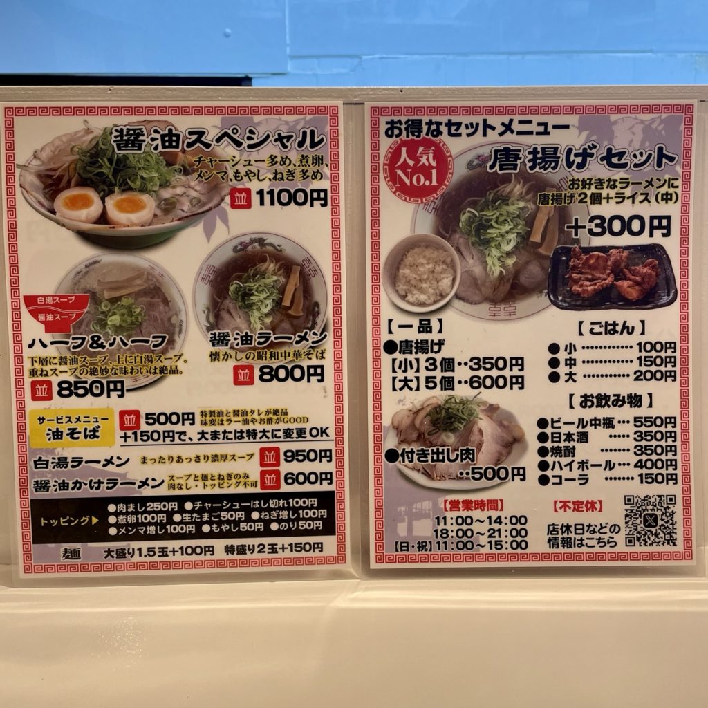ラーメンは清湯の醤油ラーメンと白湯ラーメン、それにハーフ&ハーフという珍しいメニューがあります。