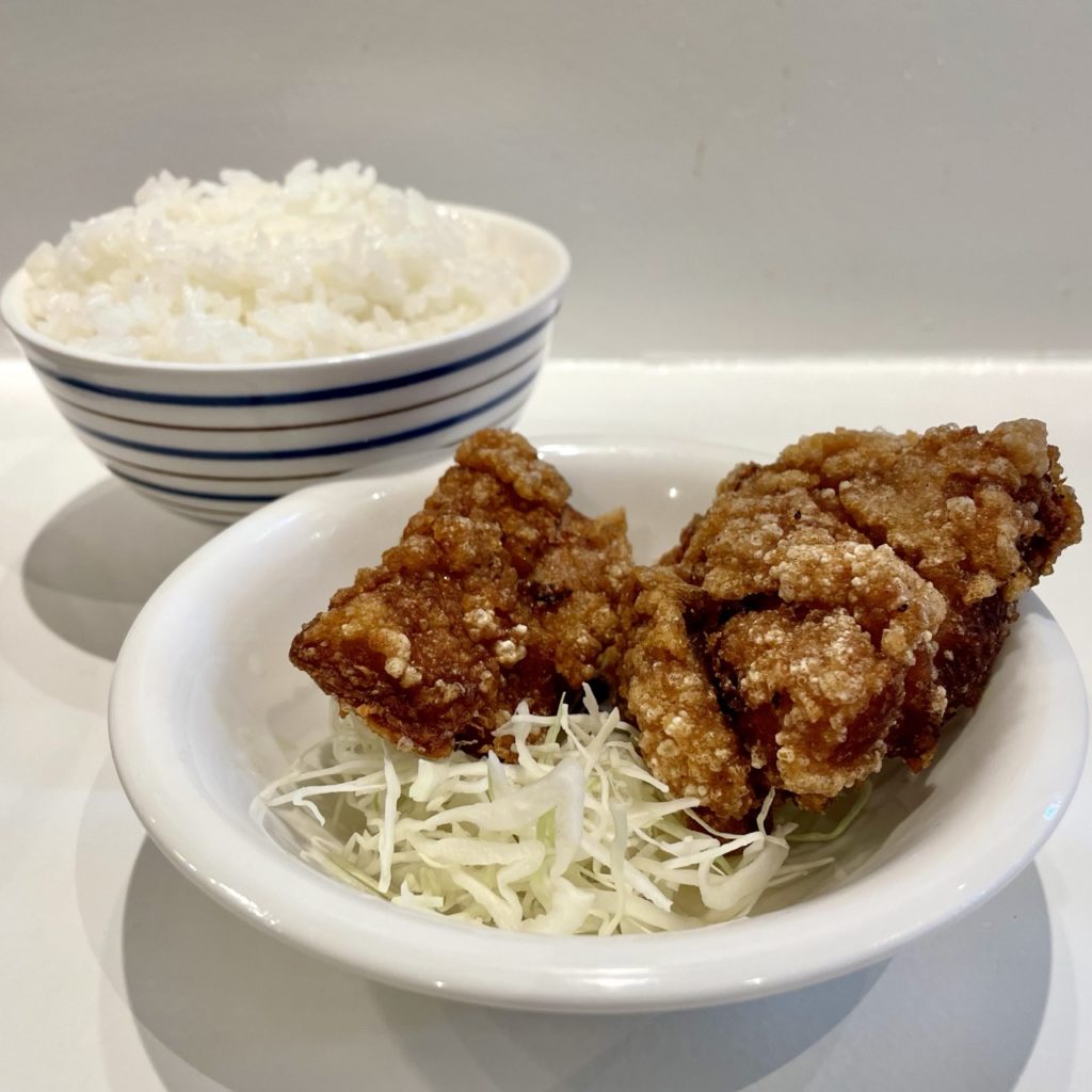 唐揚げセットは唐揚げ2個と中ライスが付いて、お値段なんと300円!