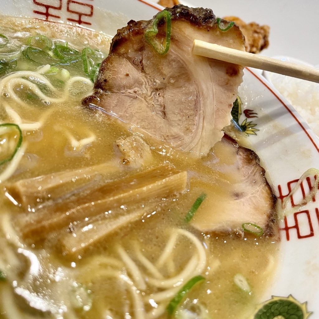 チャーシューも特徴的で、焼き豚っぽい見た目なんですけど、赤身が柔らかくて美味しい!
