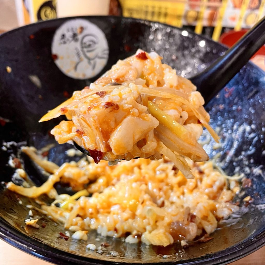麻辣ダレのピリッとした辛味と、粗挽き唐辛子プチプチ食感がアクセント。