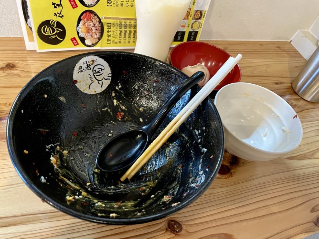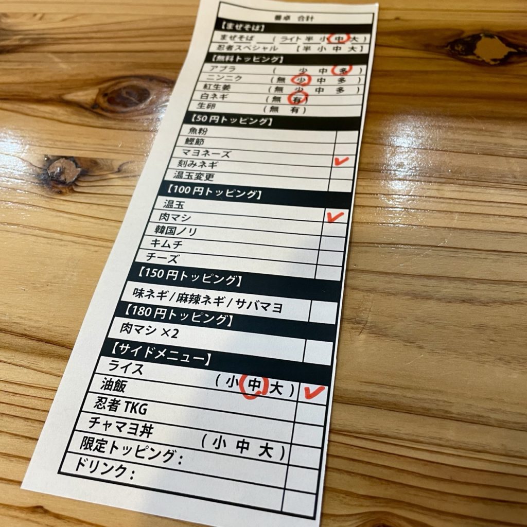 忍者さんはベースのタレが旨いんですよね!よくある油そばみたいに単調な味じゃなくて、個人的にここのは味変もいらないぐらい。