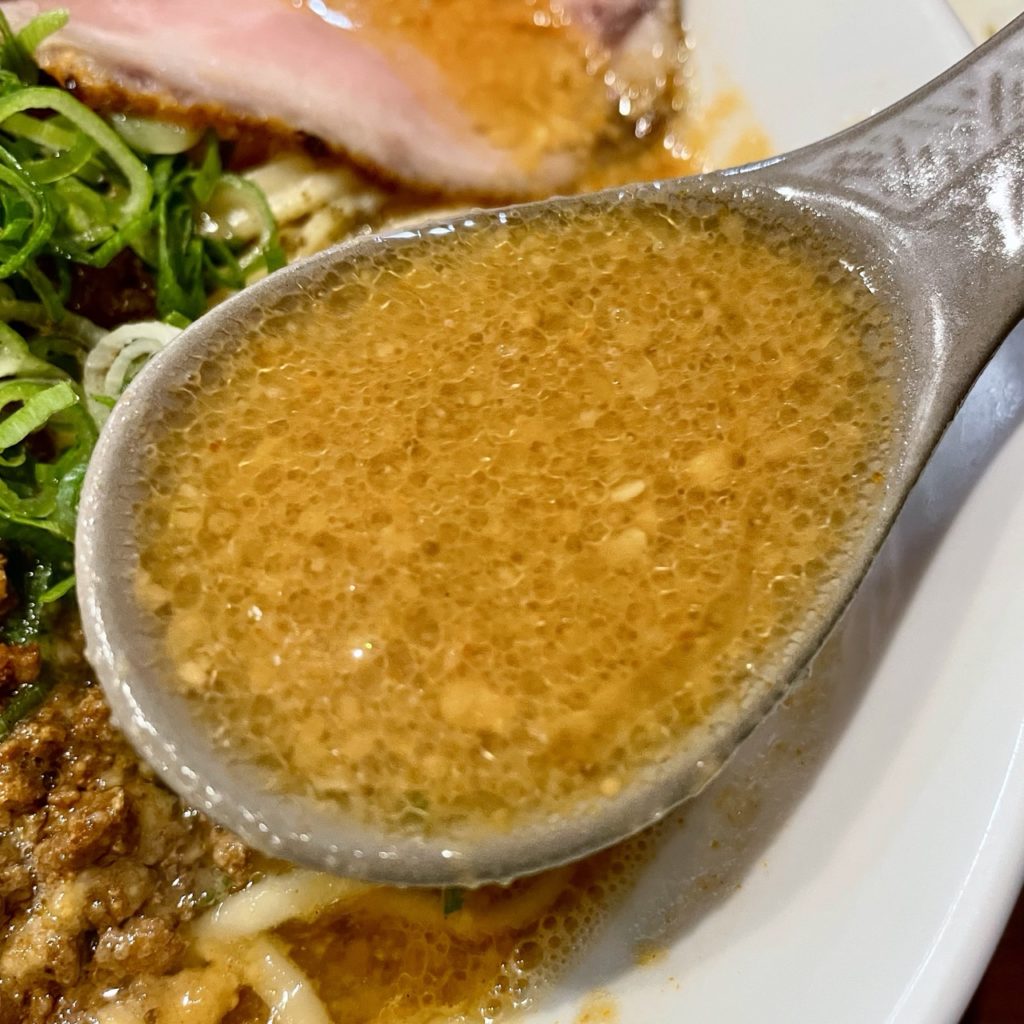 出汁感の強い胡麻スープにピリッとしたラー油の風味がたまんね〜!