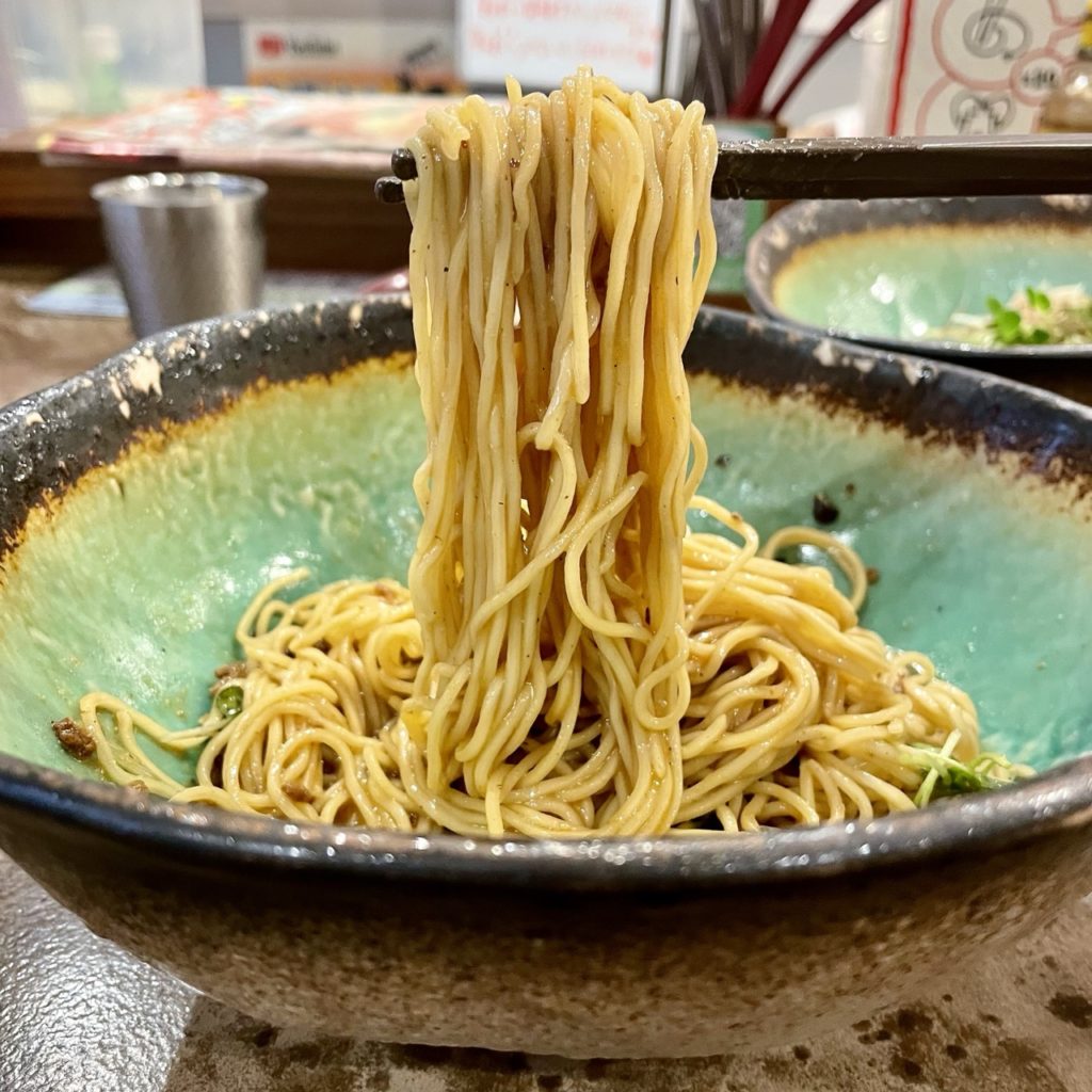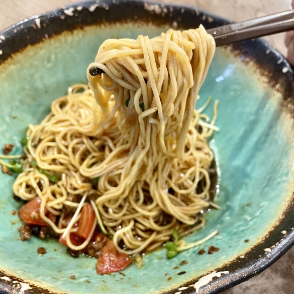 温かい汁なし担々麺も、着丼時は細麺のフレッシュな歯ごたえが味わえるんですが、冷やしでさらにギュッと締まった食感を味わえる!これがもう最高!