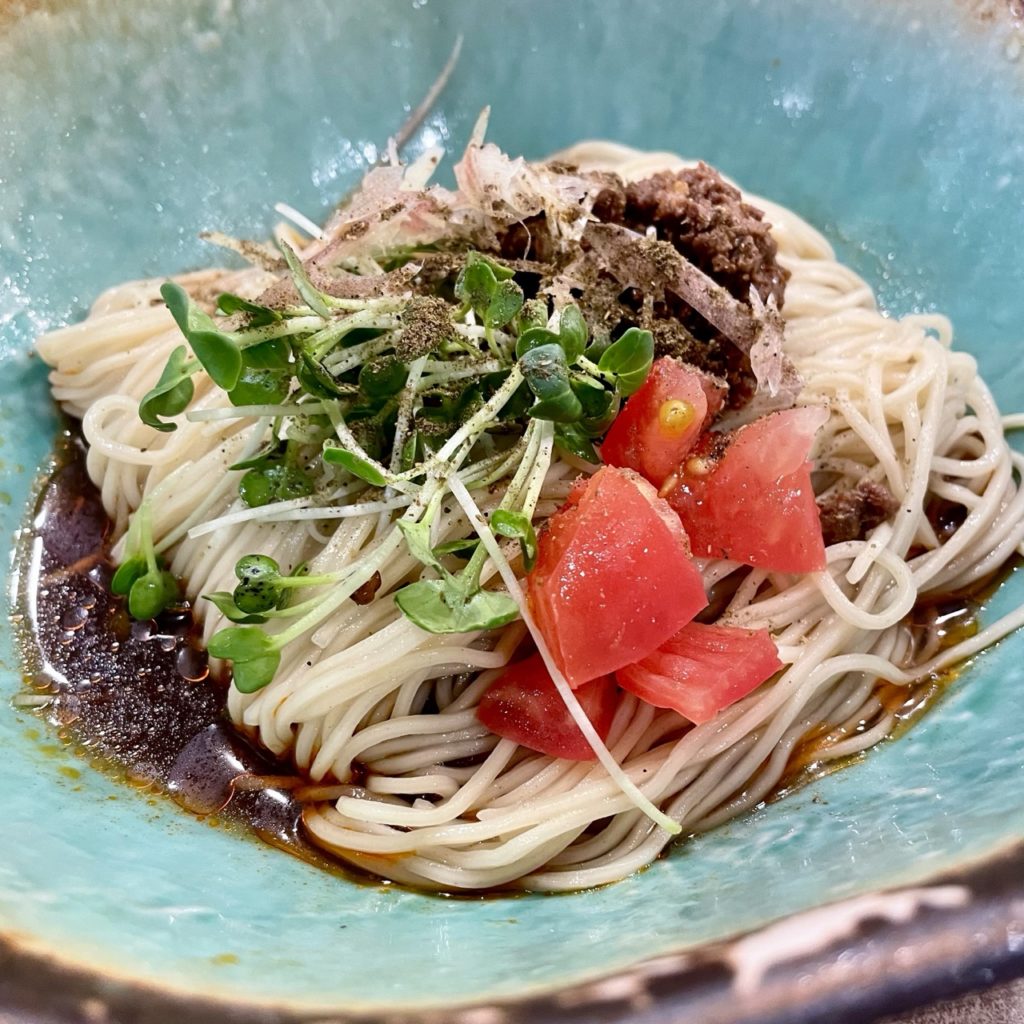 みょうがやかいわれ等のトッピングが、シャキシャキ感やサラダ感覚で食べられる爽やかさを演出して良い仕事してる!