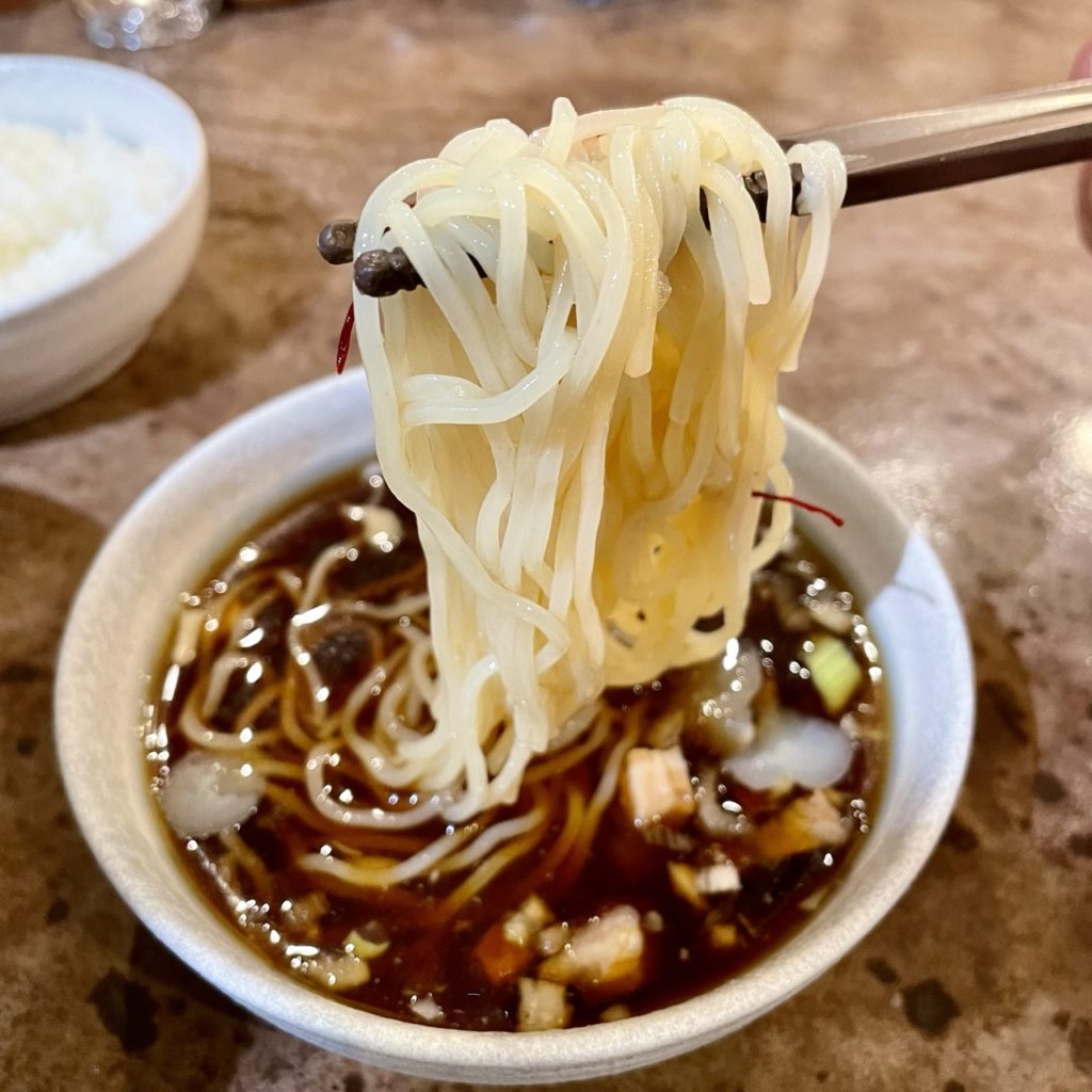 氷水でしっかり冷やされた麺は、ツルツルとした喉越しが良い!