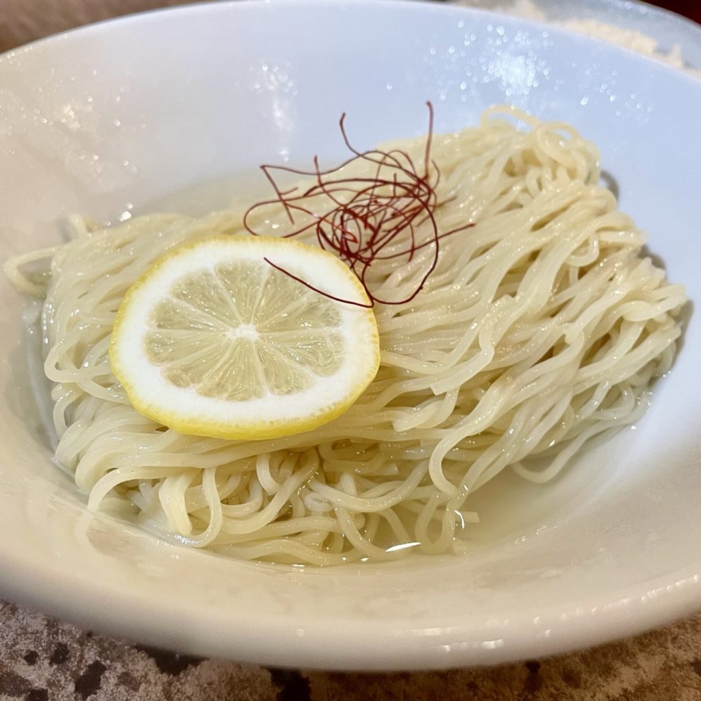 トッピングは輪切りレモンと彩りの糸唐辛子