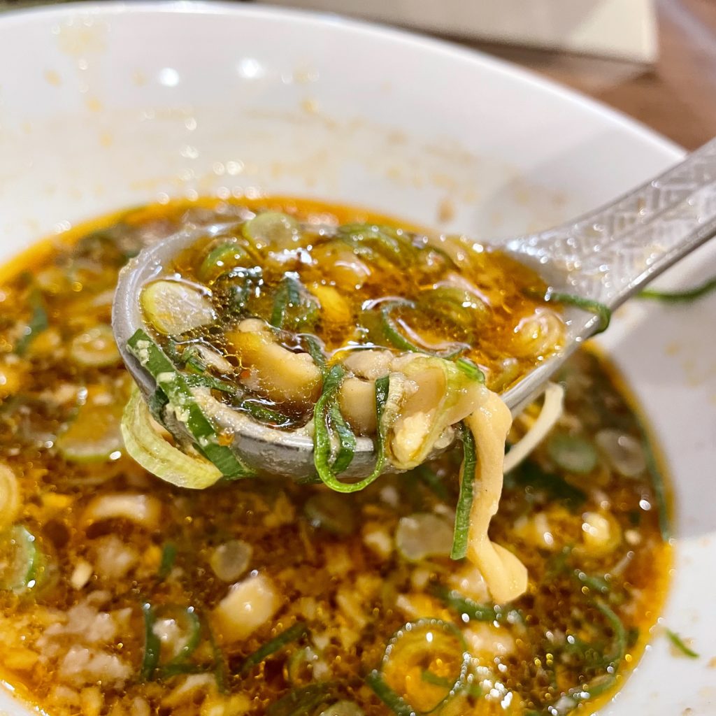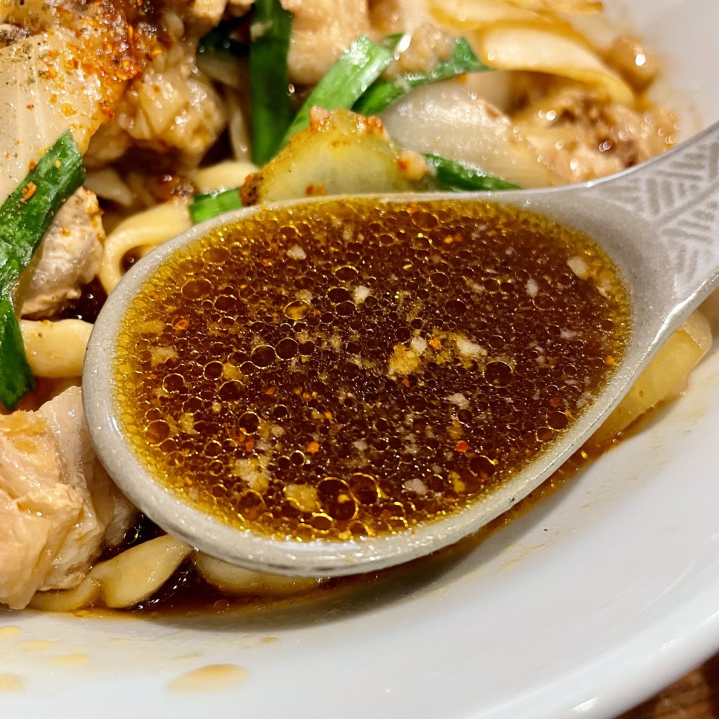 生姜が効いたスープは出汁の風味がすごく感じられて、濃い色の見た目以上に飲みやすい!