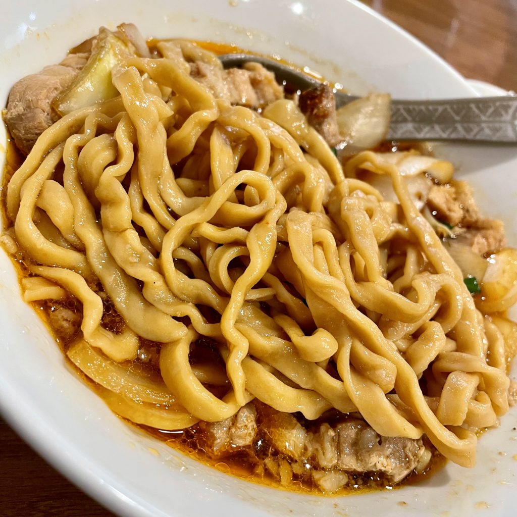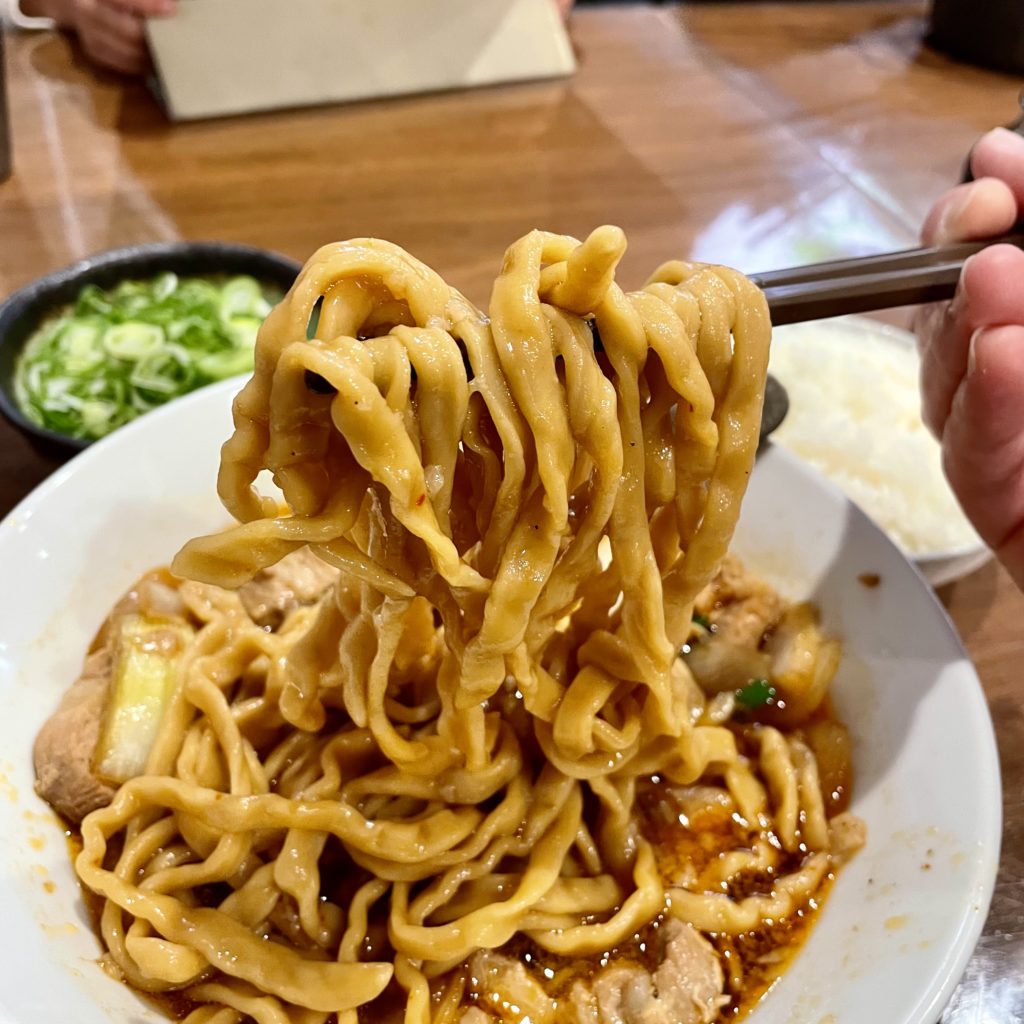 コシのある極太麺で、ブリンブリンにうねる食感がたまらない!