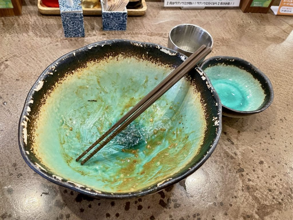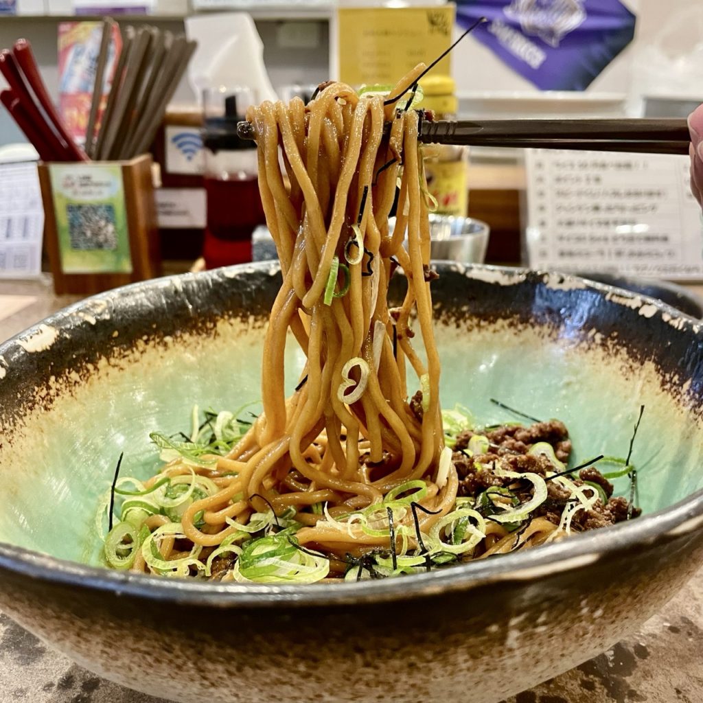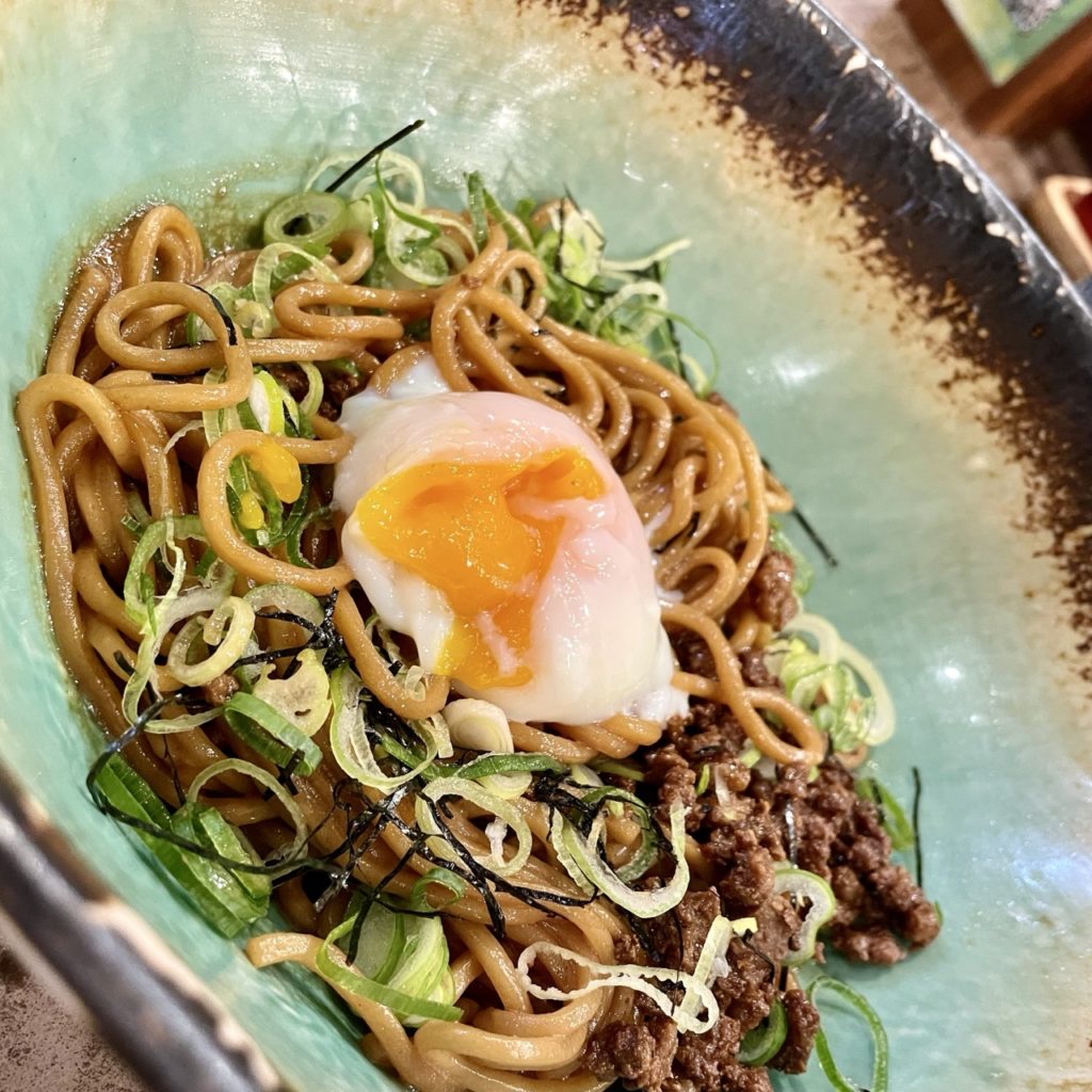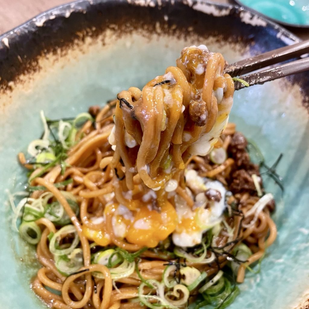 麺に汁気がほとんどないので、崩した温玉を絡めて食べるのが好きなんですよね〜。
