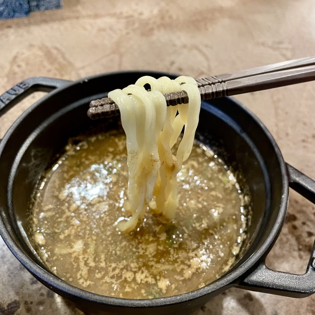 太めで一定の食べごたえがあり、つけ麺にする方が好きかも。