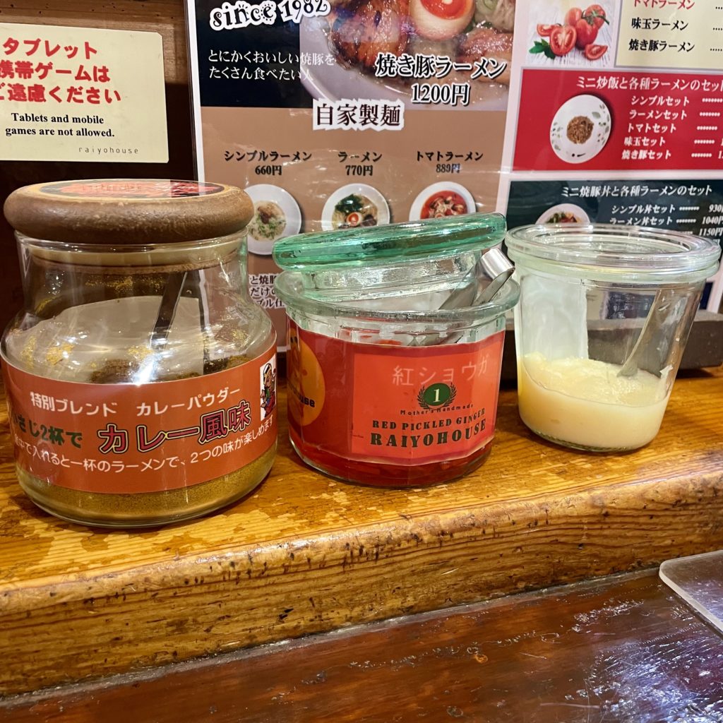 卓上には紅ショウガにんにくの他に、特別ブレンドというカレーパウダーも。