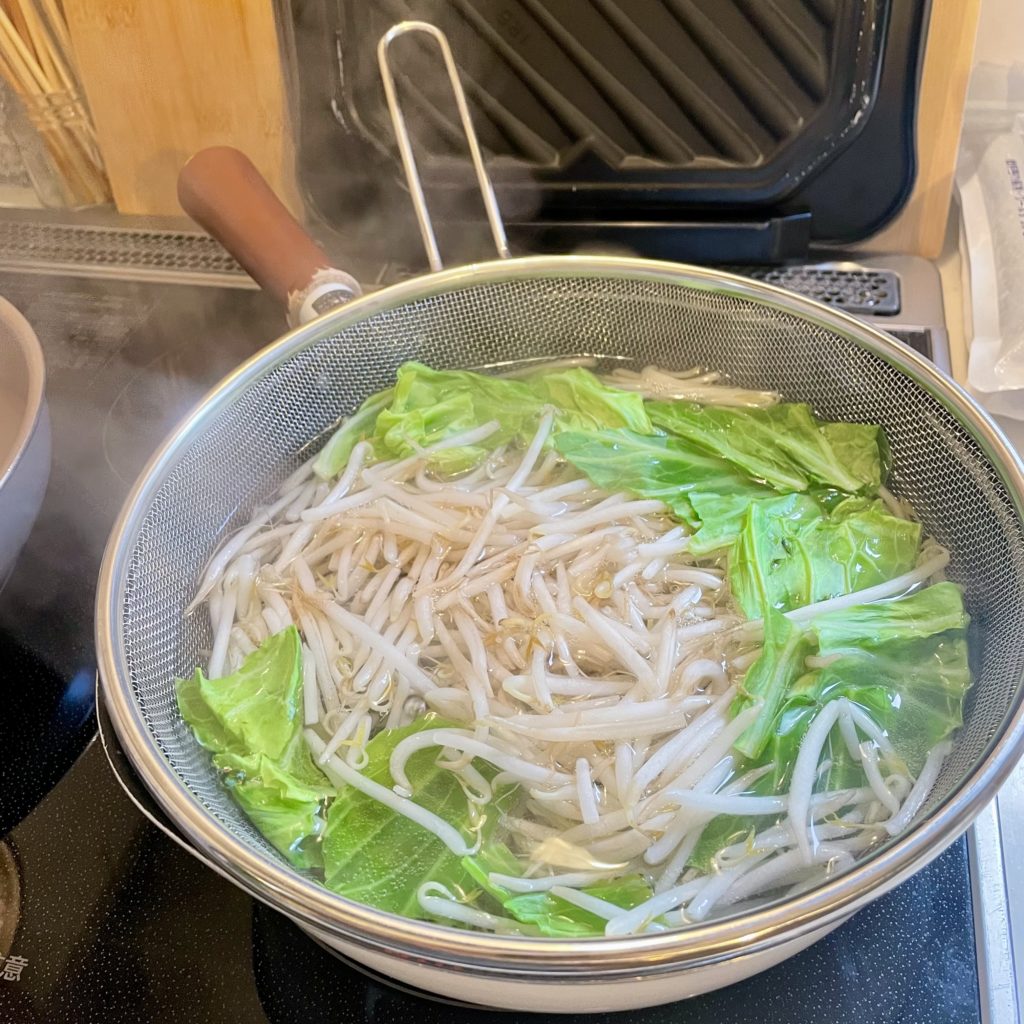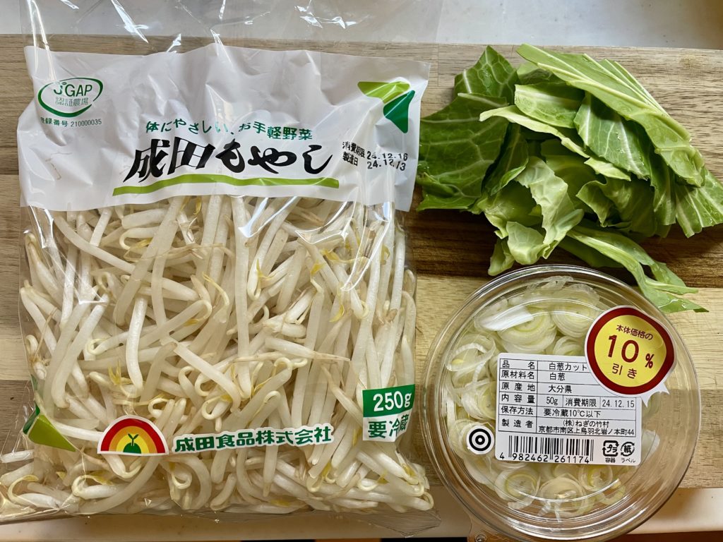 今回追加トッピングとして用意したのは、もやし・キャベツ・白ネギ。