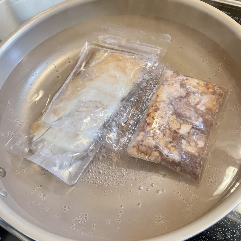 まぁざっくり言うとスープを解凍する用の鍋と、麺を茹でるための鍋が必要ですよということ。