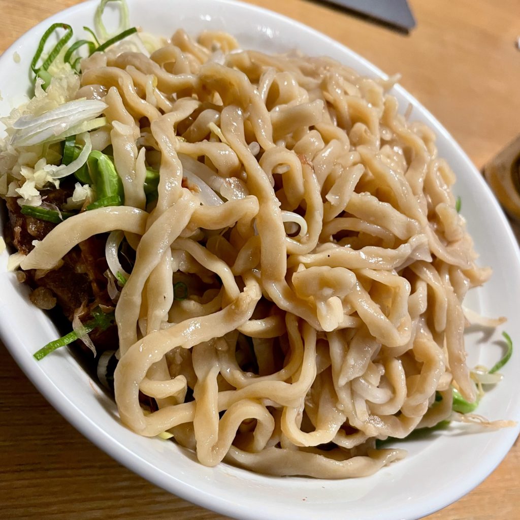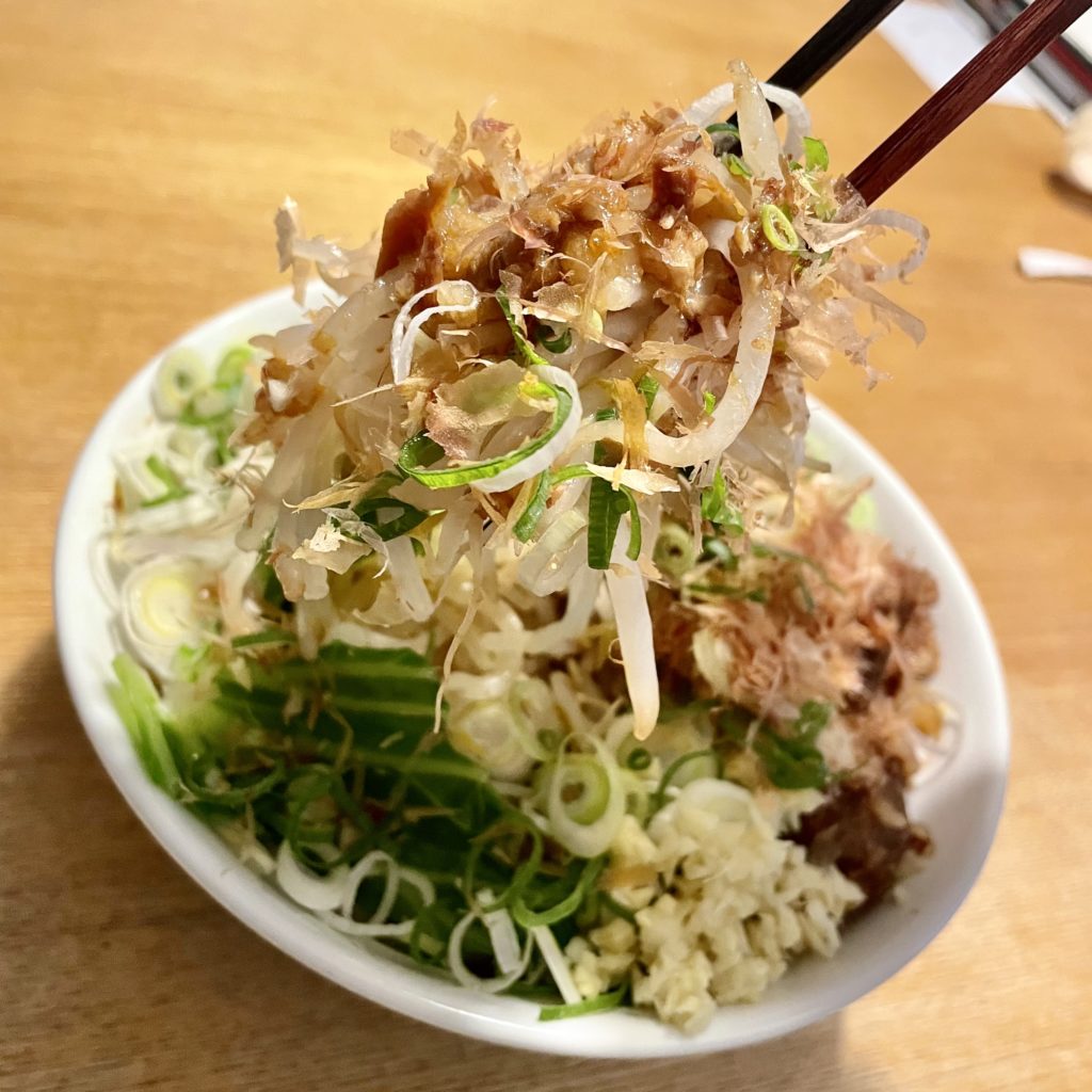 想像ではもっと塩ダレバキバキのジャンクな味かと思ってたけど、ちゃんと豚と節系の出汁が感じられて、すんげーバランスの良い味だった!