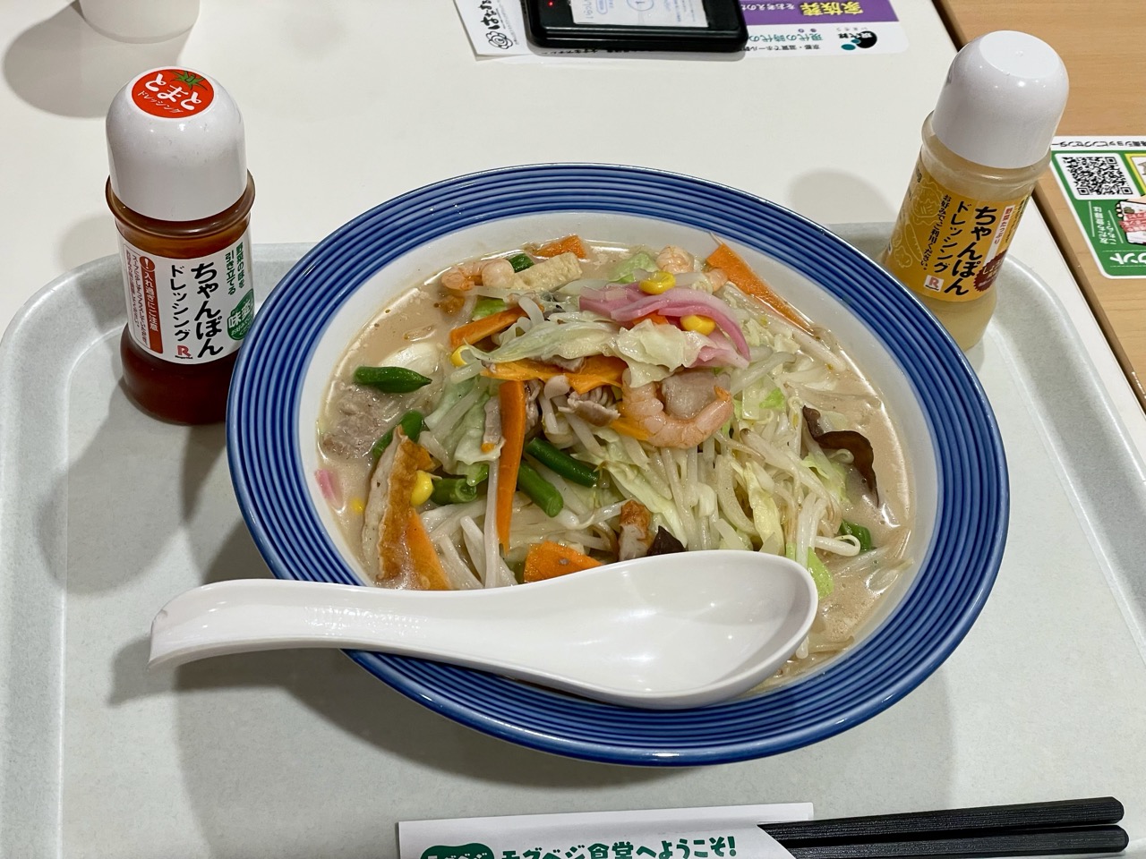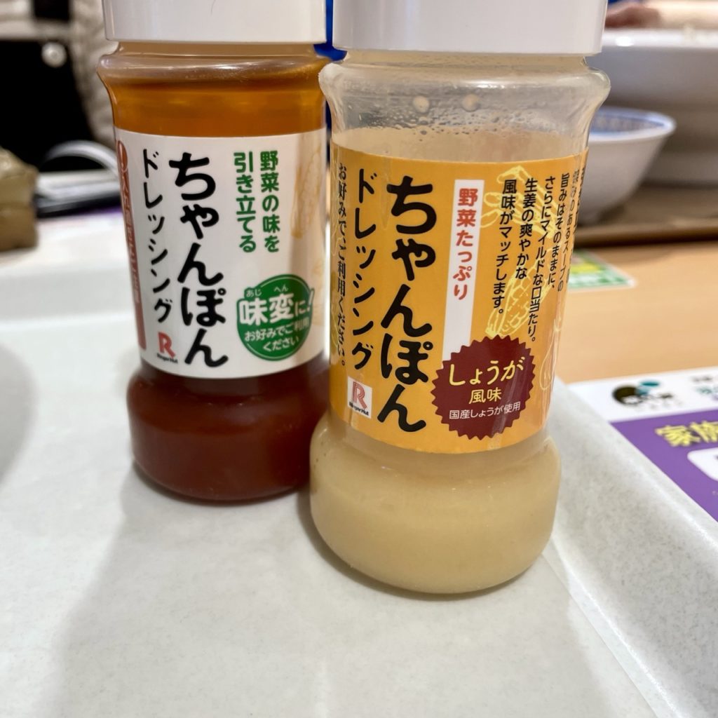 このメニューを頼むとちゃんぽんドレッシングが付いてきて、味変をすすめられます。