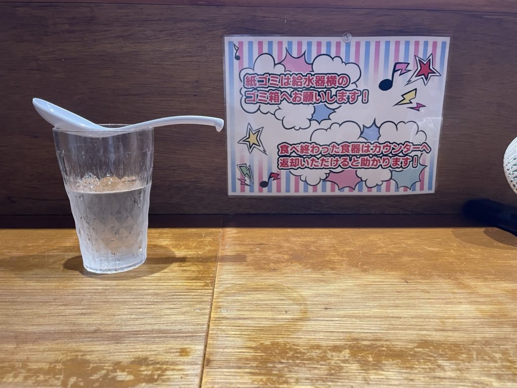 セルフの水やレンゲを取って着席。