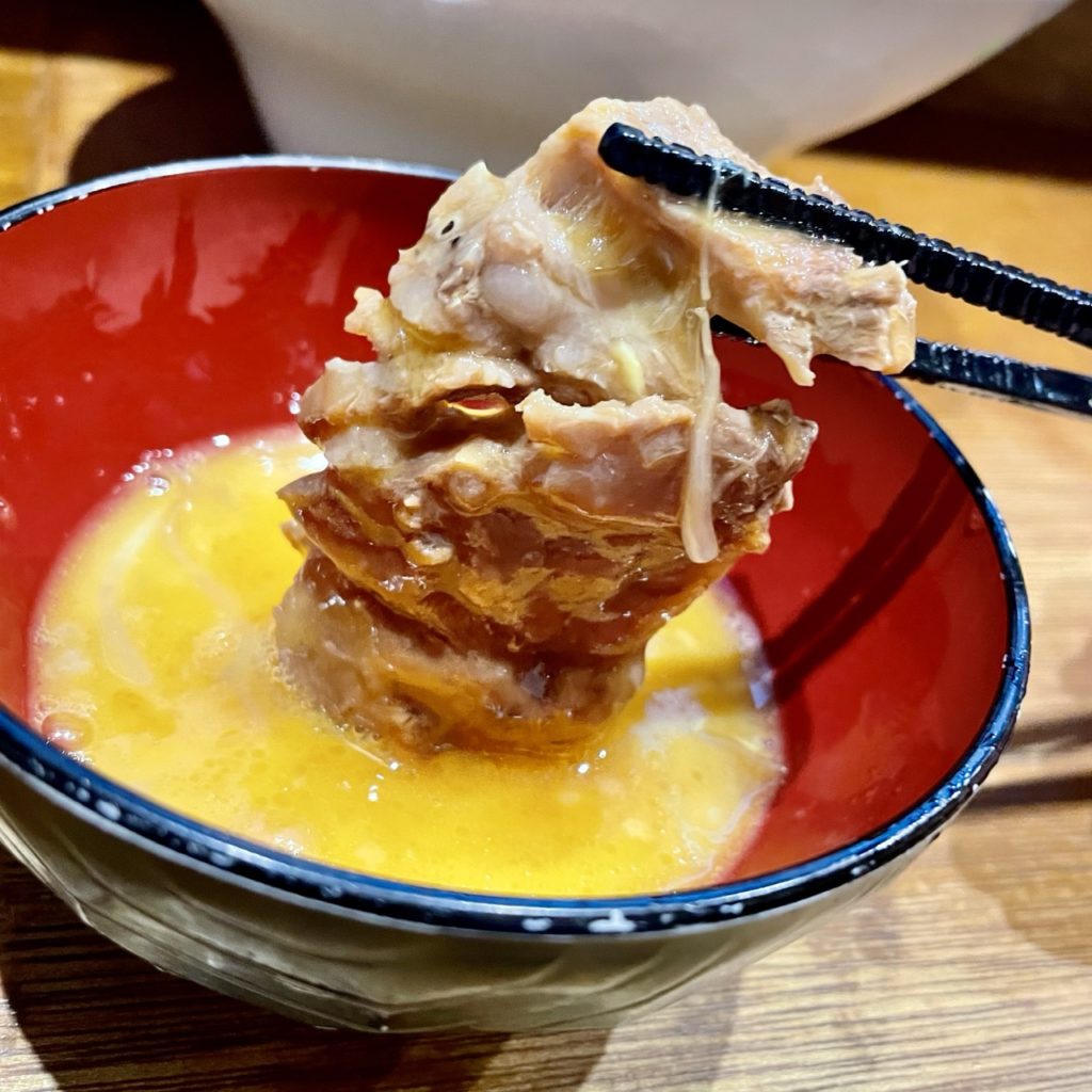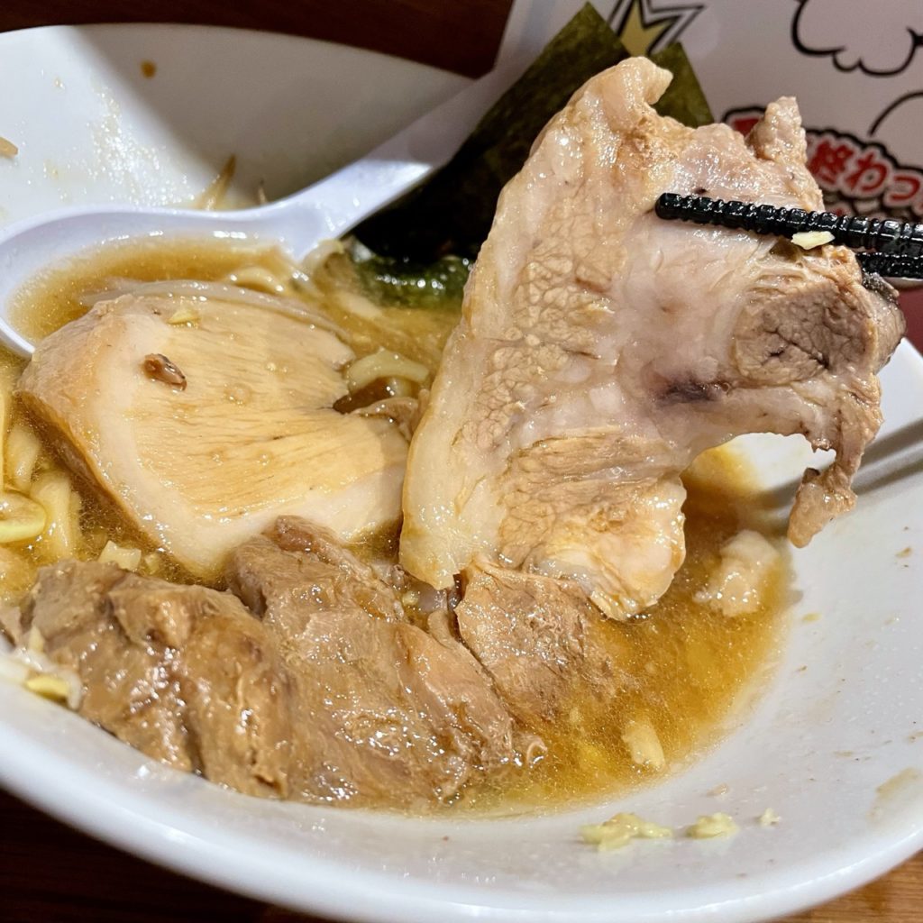 これスープ煮込まれてたのがめちゃくちゃデカイ寸胴で、そのせいか豚エキスのパンチがガツンときて美味すぎる!醤油のバランスも素晴らしい!