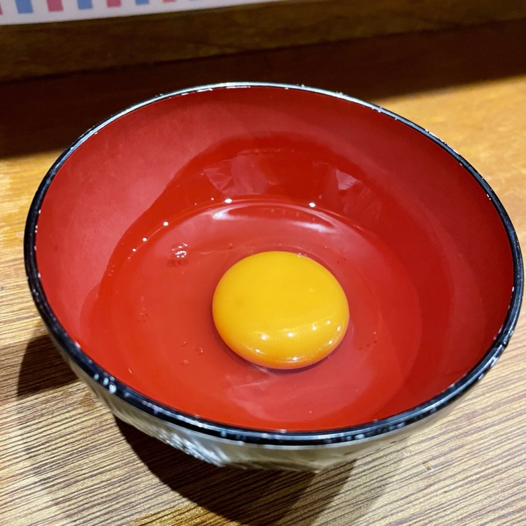 さて、こちら50円トッピングの生卵なんですけど、お分かりになりますかね?