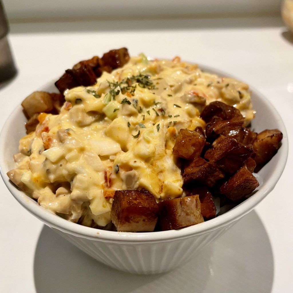 味の濃いタレのチャーシュー丼にタルタルがたっぷりかかっていますが、見た目よりも食べやすい!