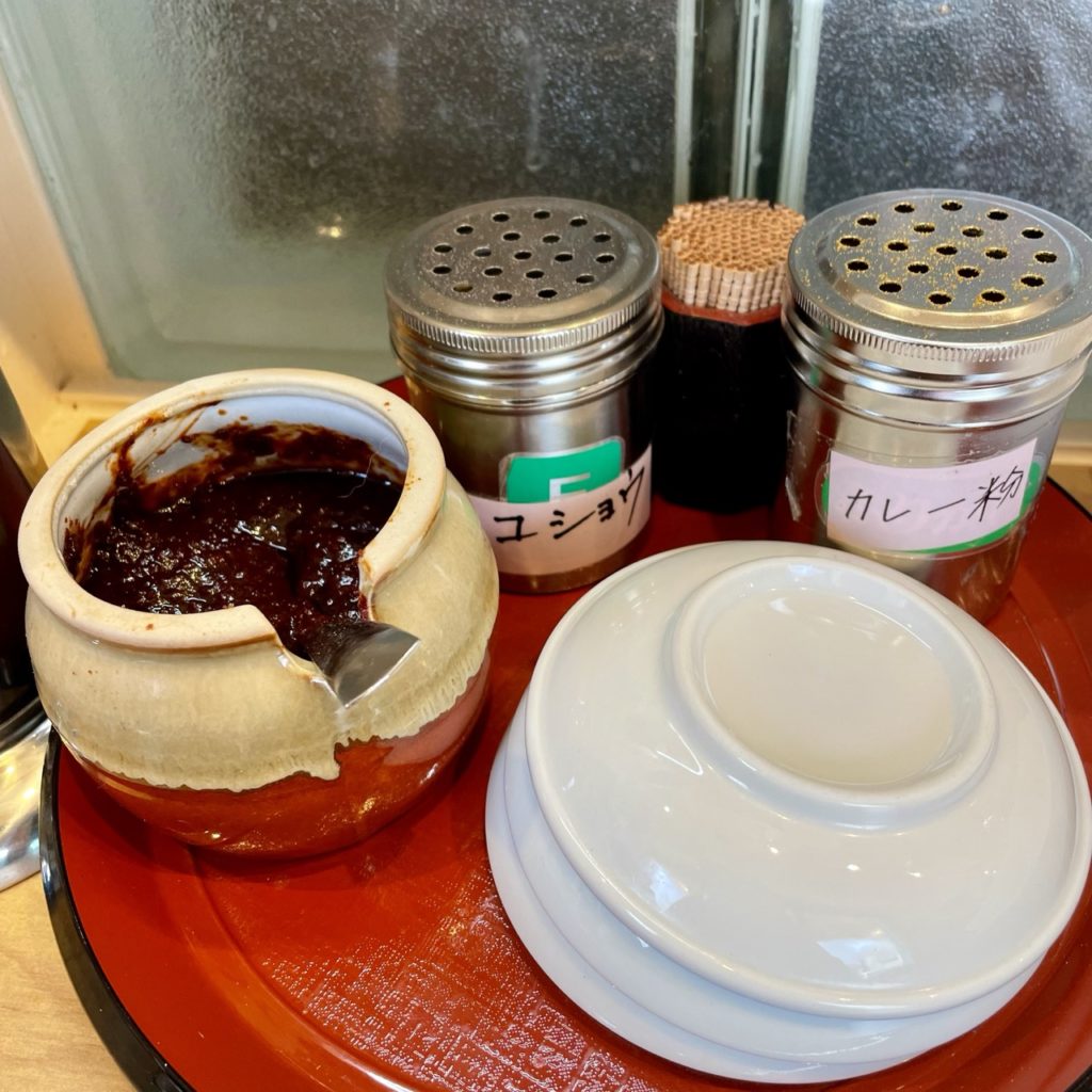 カウンター上にはにはニラ唐辛子も備え付けてあり、こちらも本家では大人気のトッピング。