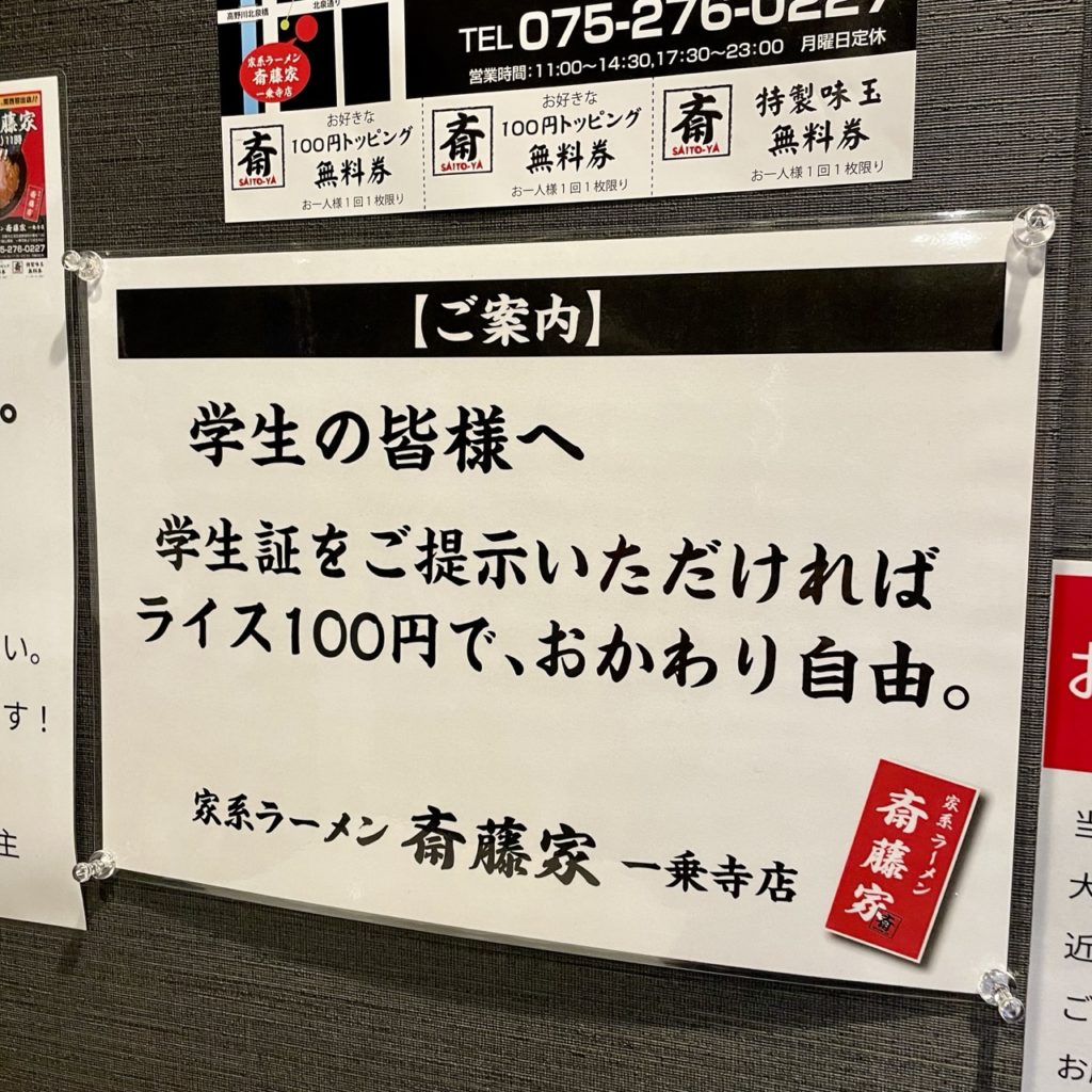 本日は京都市左京区一乗寺にあります、家系ラーメン 斎藤家 京都一乗寺店さんに来ています!