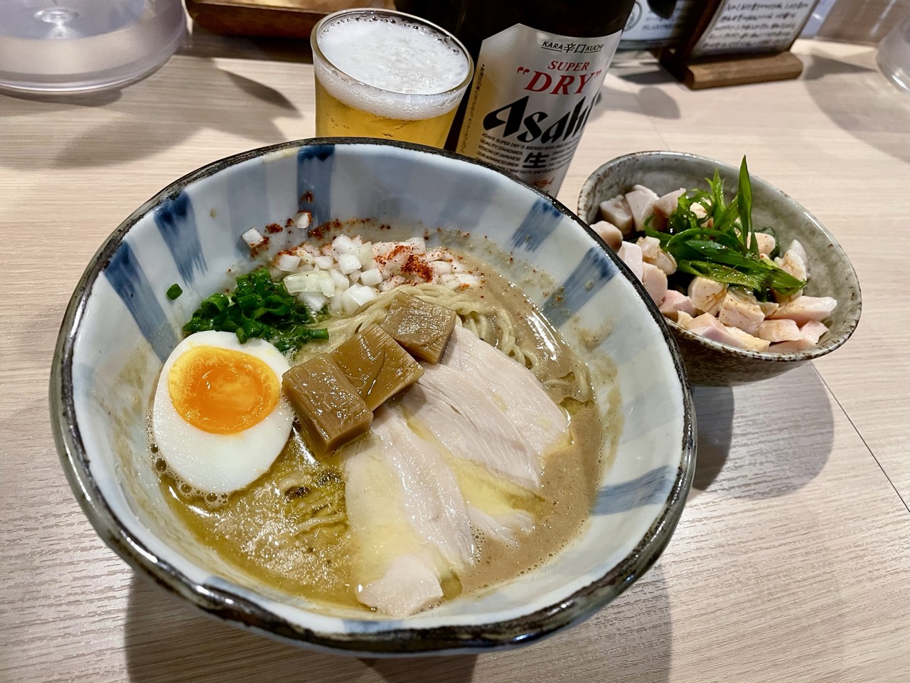 前回食べたらーめんもつけ麺に負けず劣らず濃度の高い鶏白湯スープで、過去にはラーメン雑誌の受賞歴もあります。