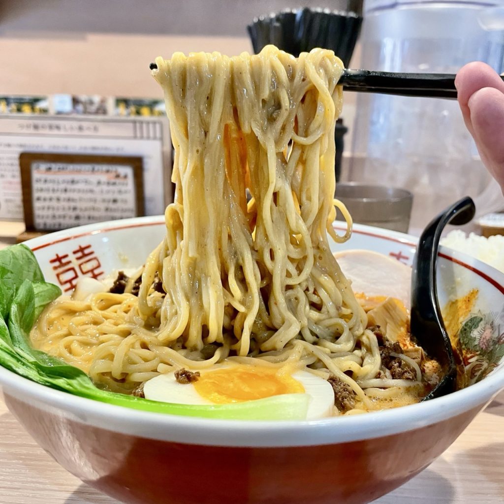スープとの絡みは言うまでもなく、麺を啜る度にスープがみるみるなくなっていく!