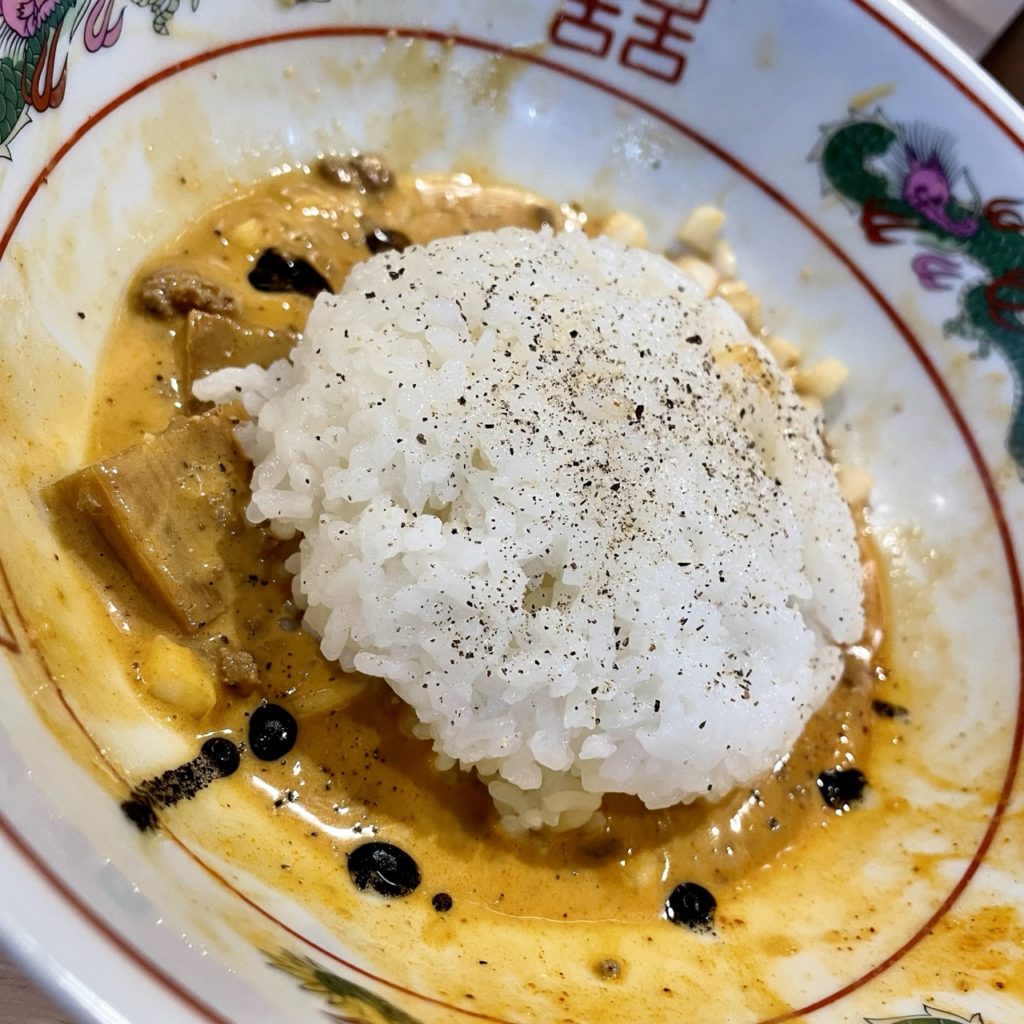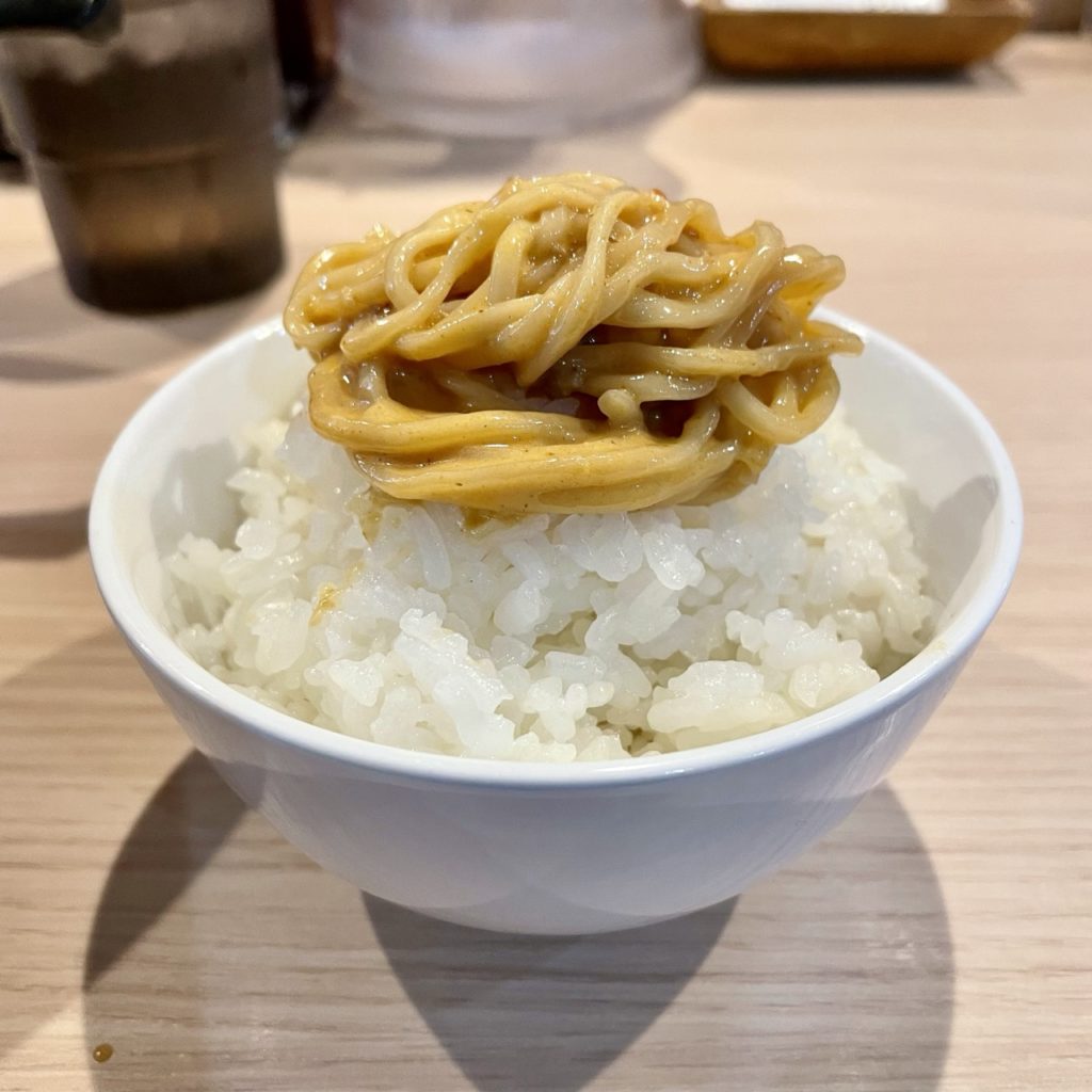 麺がしっかりスープに絡んでるんで、ごはんによく合いますわ。