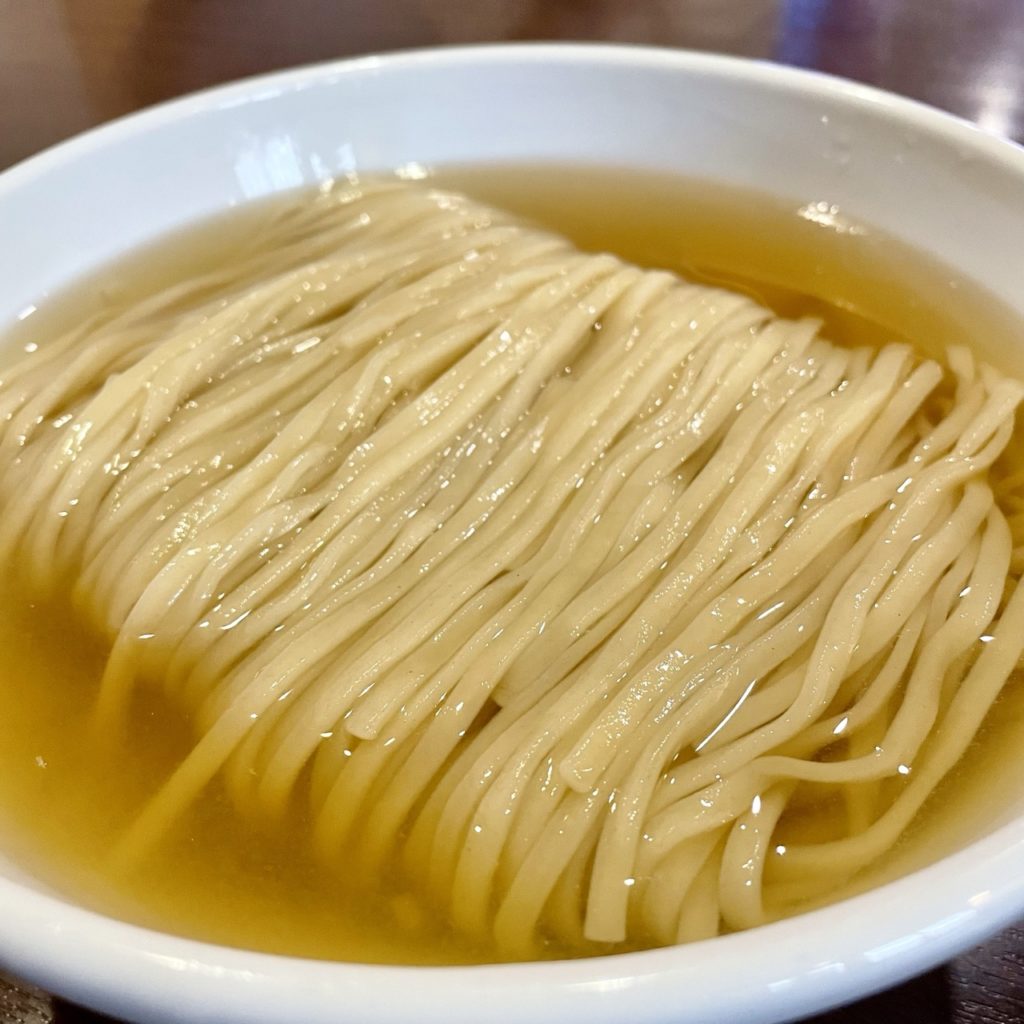 麺が浸かっているサンマ水は、ふわっと魚介が香るまろみのあるお出汁!