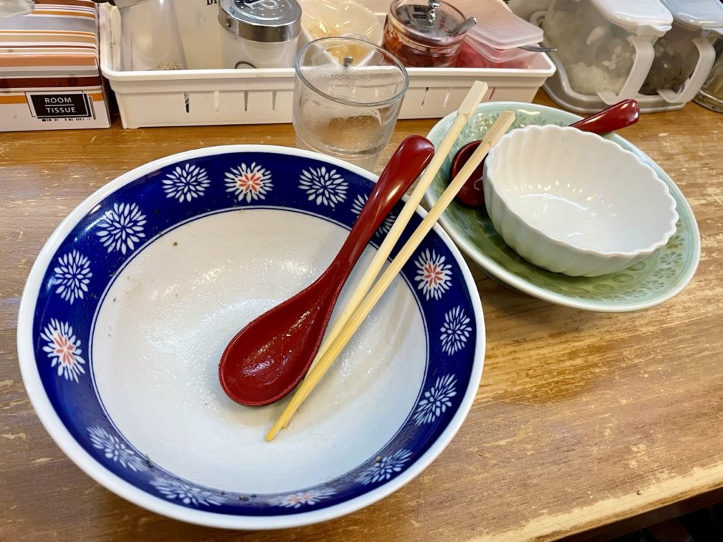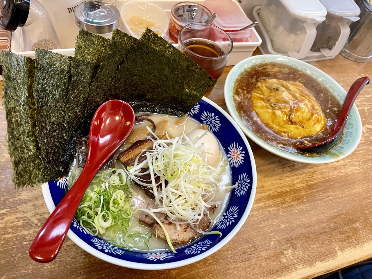 大将ワンオペなのに天津飯やチャーハン・餃子も並行して焼いたり、すごい目まぐるしいオペレーションでしたね。