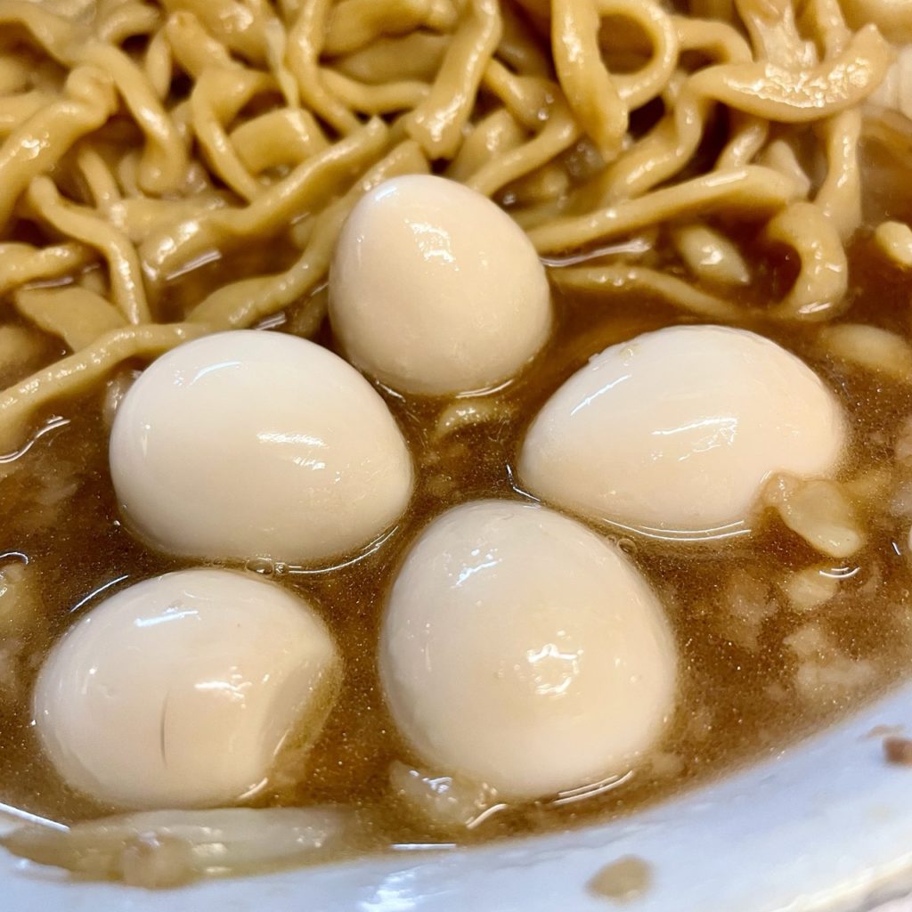 うずらちゃんの色と比較しても、やっぱ今日の麺はいい感じの染まり具合だよな。