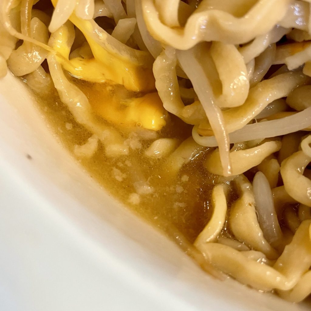 生卵で釜玉風も好きだけど、温玉のトロッとした白身絡めるのもいいね!