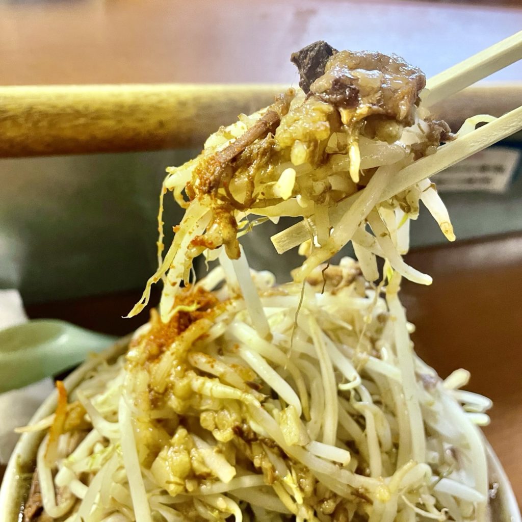 ヤサイチョモだからと豚を減らしがちですが、豚がたくさんあるとその分ヤサイを食べるスピードに迷いが出ないので、結果的に迅速な攻略に繋がると僕は思っています。