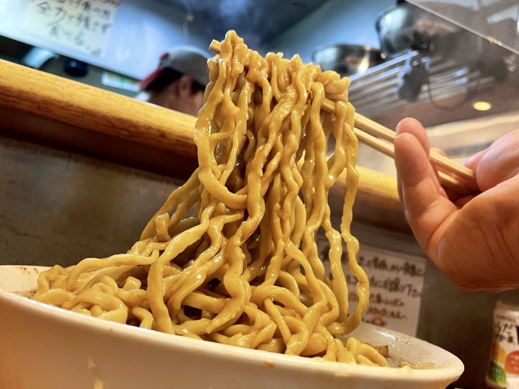 もっちり感と、噛むと弾けるコシを兼ね備えた麺はかなり長めで啜り甲斐があるんだよな〜!