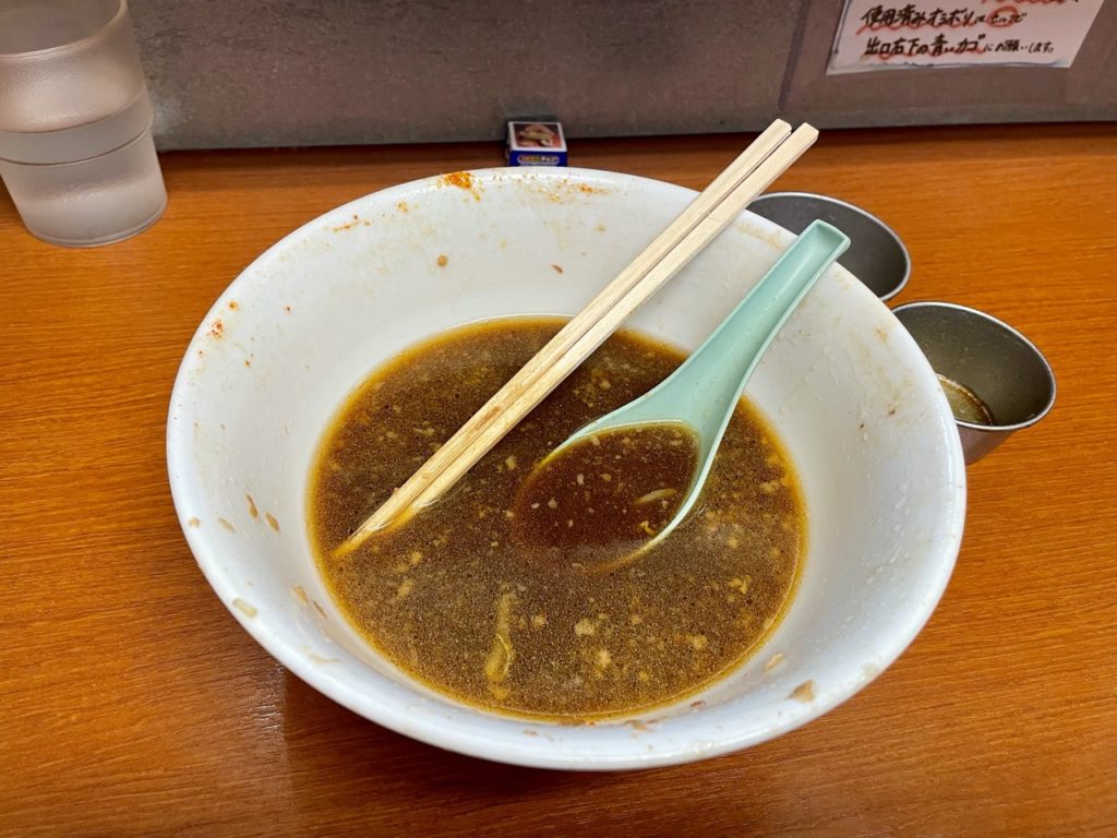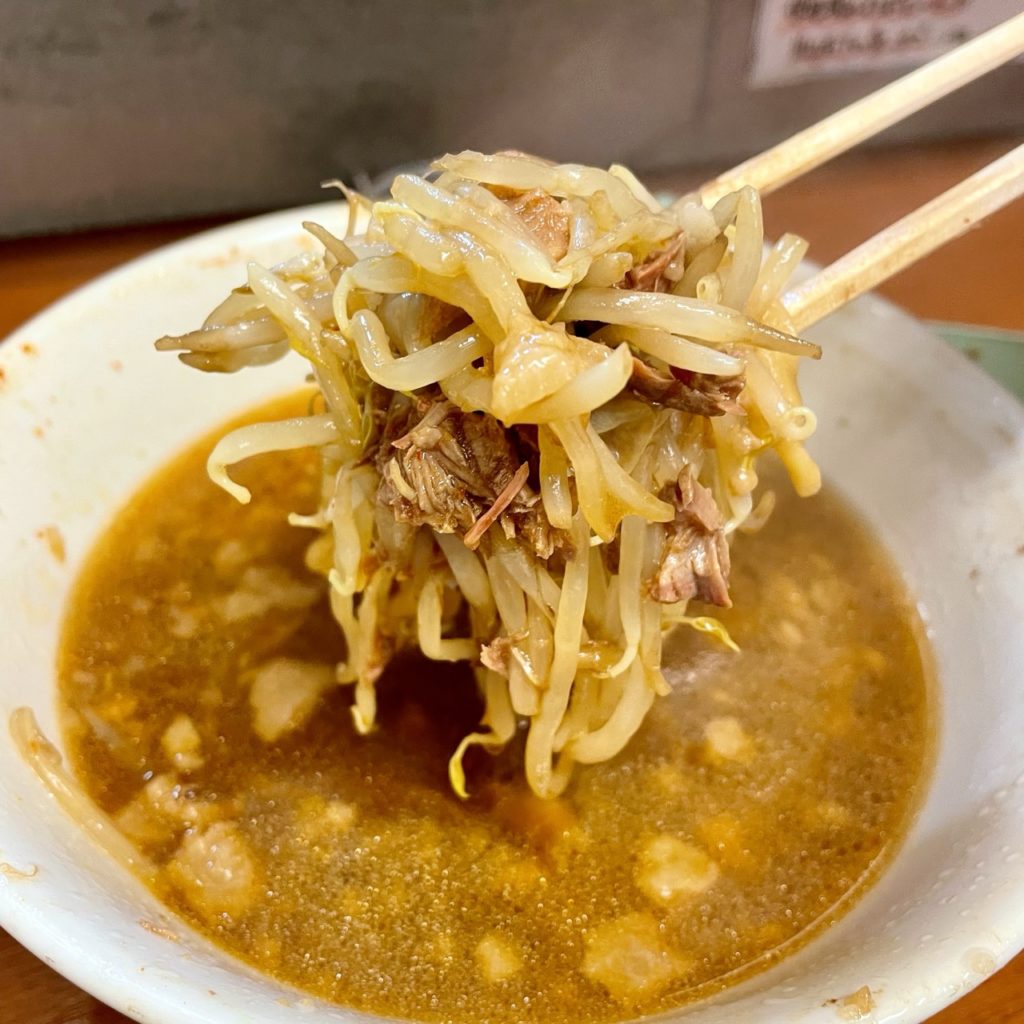 パッと見汁気多めだったので液体油中心なのかと思いきや、下の方はカエシがたっぷりでチョモヤサイを食べるのにありがたい仕様!