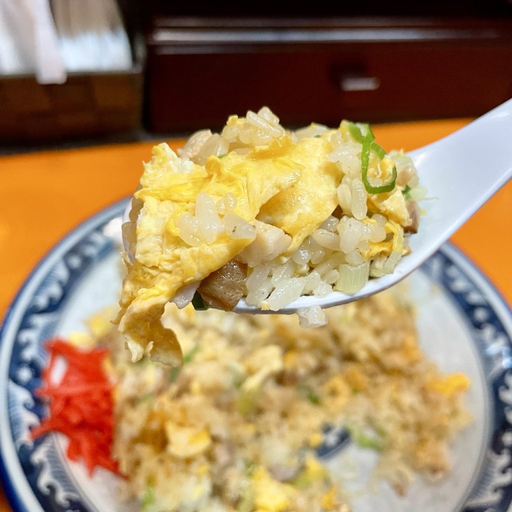 最初は量こそビビりましたが、味付けは塩が主体であっさり食べやすく、それでいて米粒一つ一つが油でコーティングされているかのような香ばしいパラパラ感が素晴らしい!