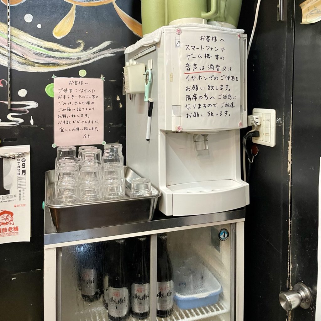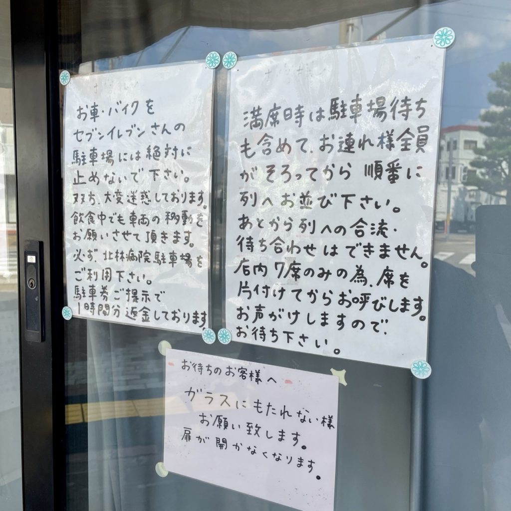 店主さんお一人のワンオペ体制のため、お願いの張り紙がちらほら。